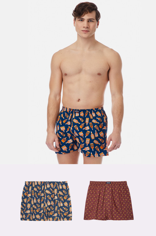 Popline Φαρδύ Ανδρικό Βαμβακερό Boxer Καρώ με άνοιγμα 2τμχ