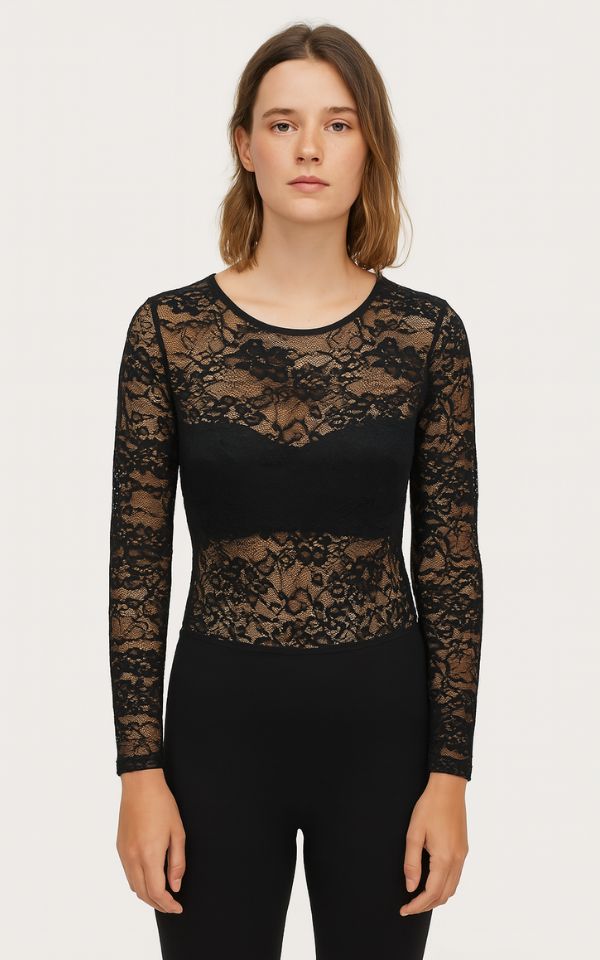 • Γυναικεία μακρυμάνικη μπλούζα από TENCEL™ Modal, μαλλί & δαντέλα