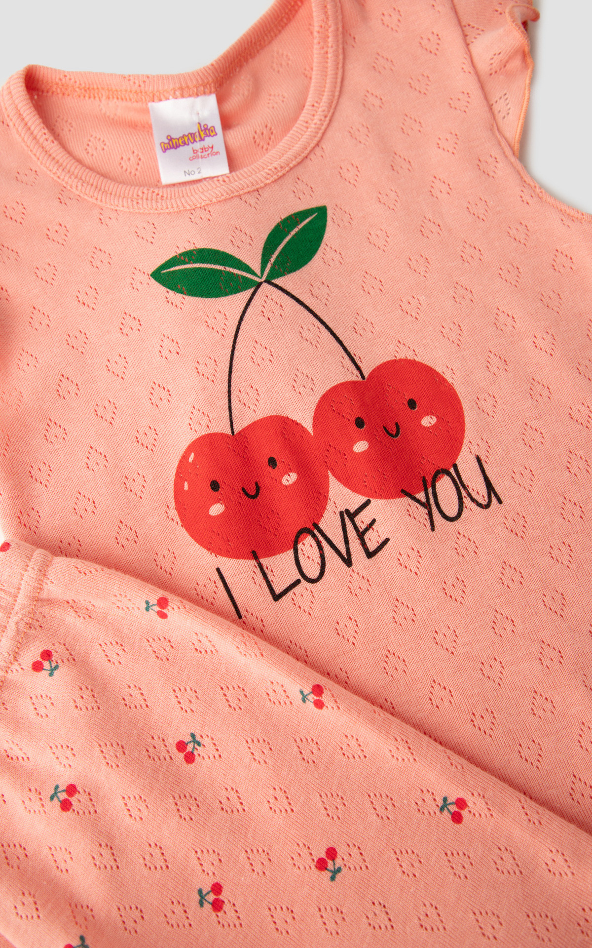 • Cherries Pointelle Κοντομάνικη Βρεφική Πυτζάμα