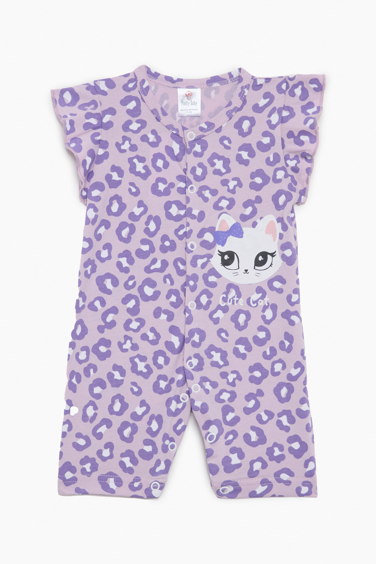 • Cute Cat Κοντομάνικο Εμπριμέ Βρεφικό Φορμάκι Εξώρουχο Ψιλή Πλέξη