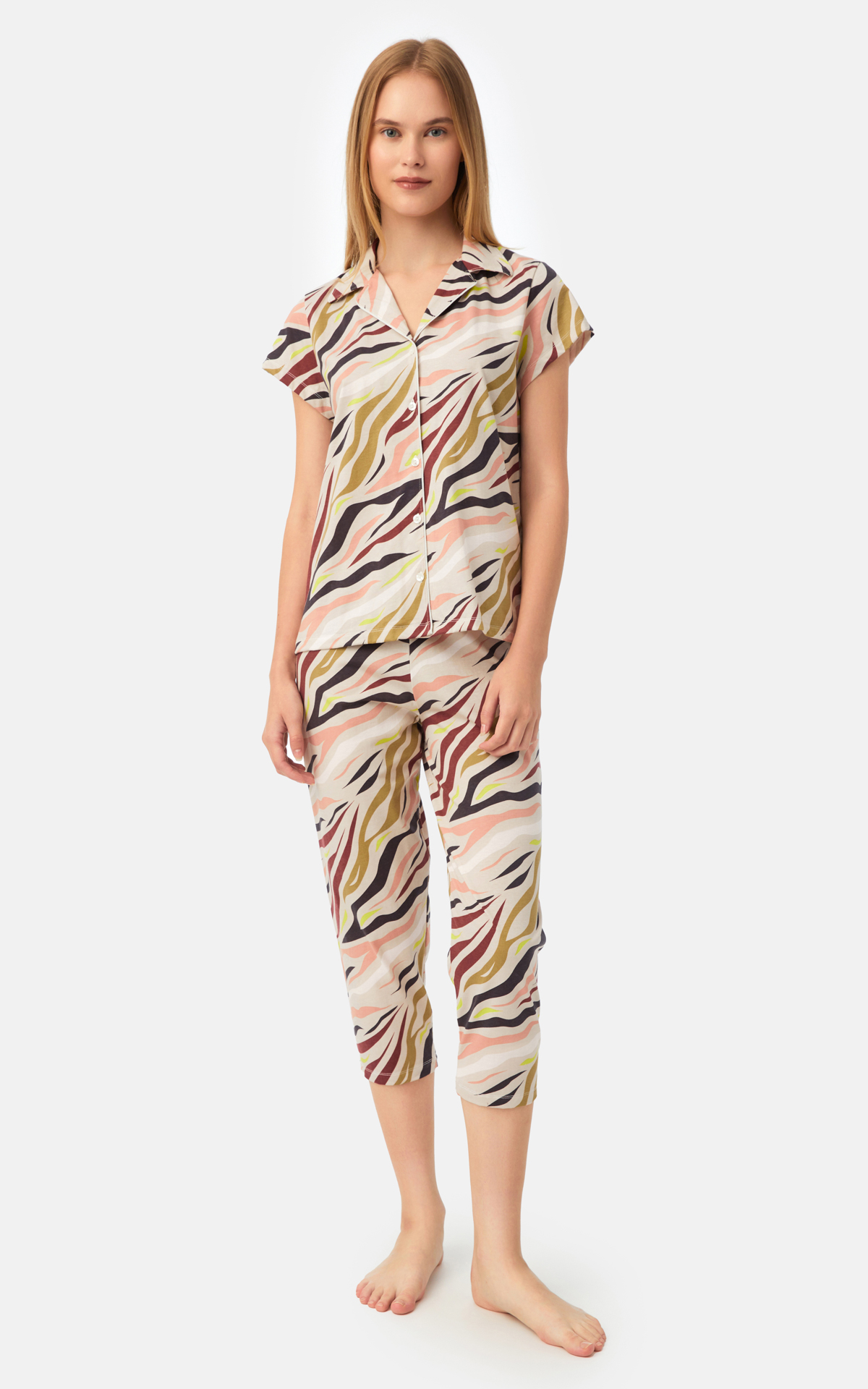 • Εμπριμέ Κουμπωτή Κοντομάνικη Κάπρι Γυναικεία Πυτζάμα