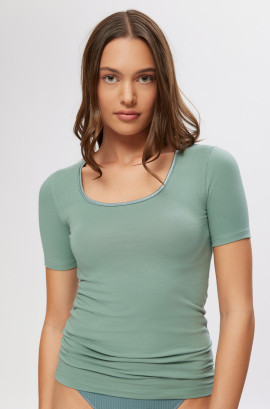 • Merino Μάλλινο Γυναικείο Κοντομάνικο Φανελάκι Ανοιχτή λαιμόκοψη