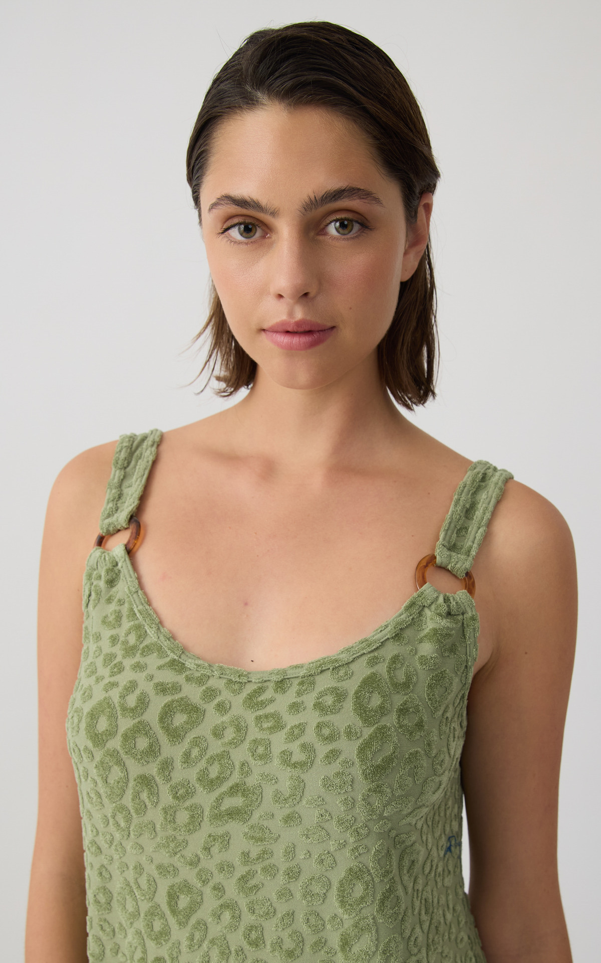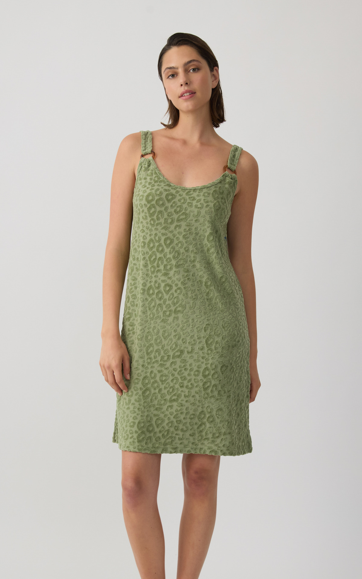 • Frotte Devore Leopard Γυναικείο Αμάνικο Φόρεμα με κρίκους