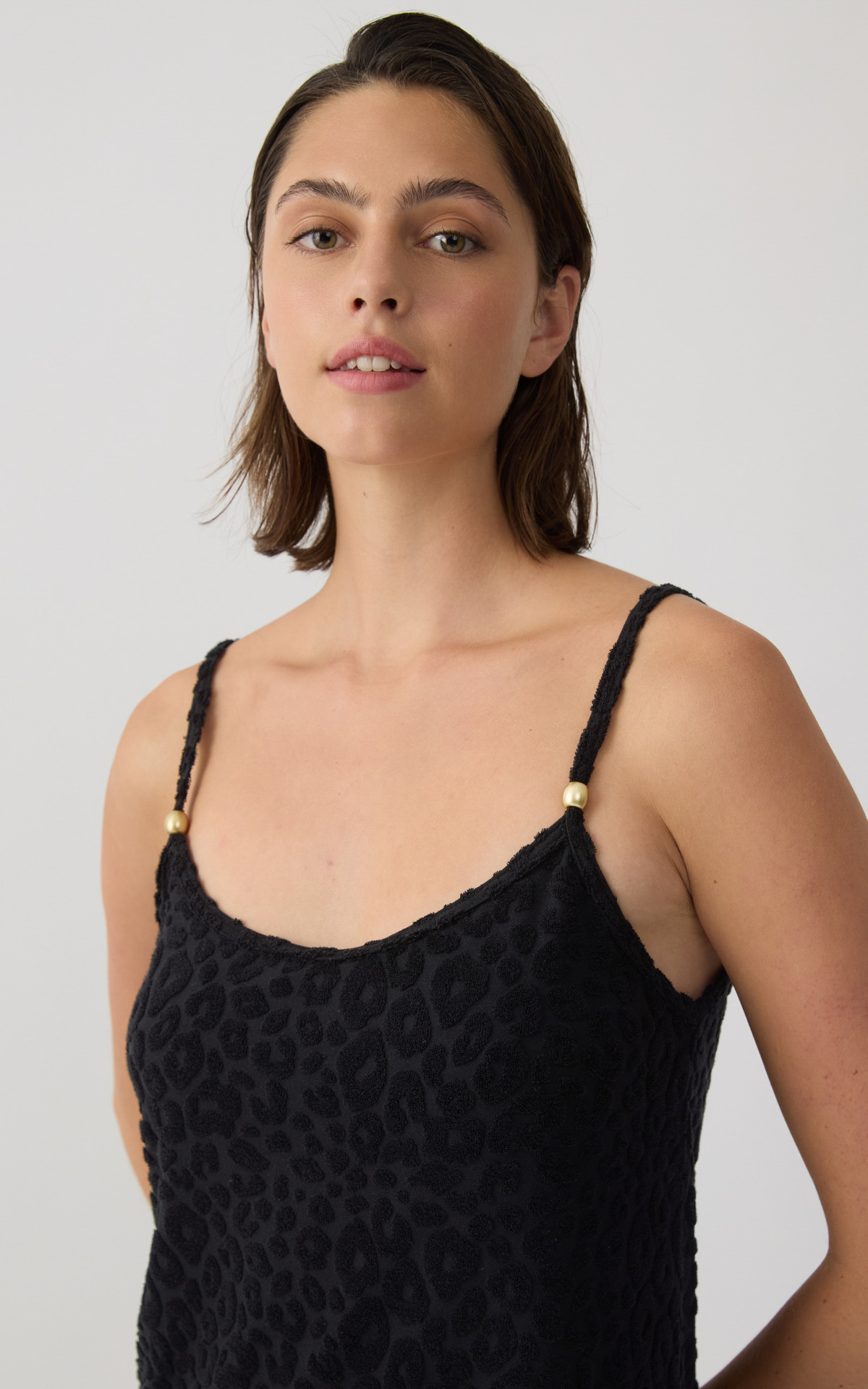 • Frotte Devore Leopard Γυναικείο Αμάνικο Φόρεμα Μπριτέλα
