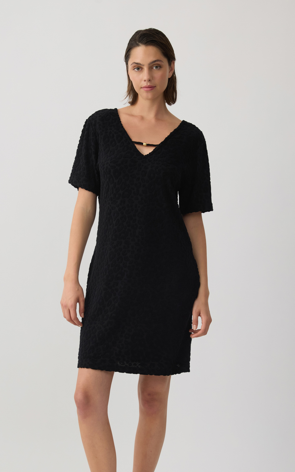 • Frotte Devore Leopard Κοντομάνικο Γυναικείο Φόρεμα με V λαιμόκοψη