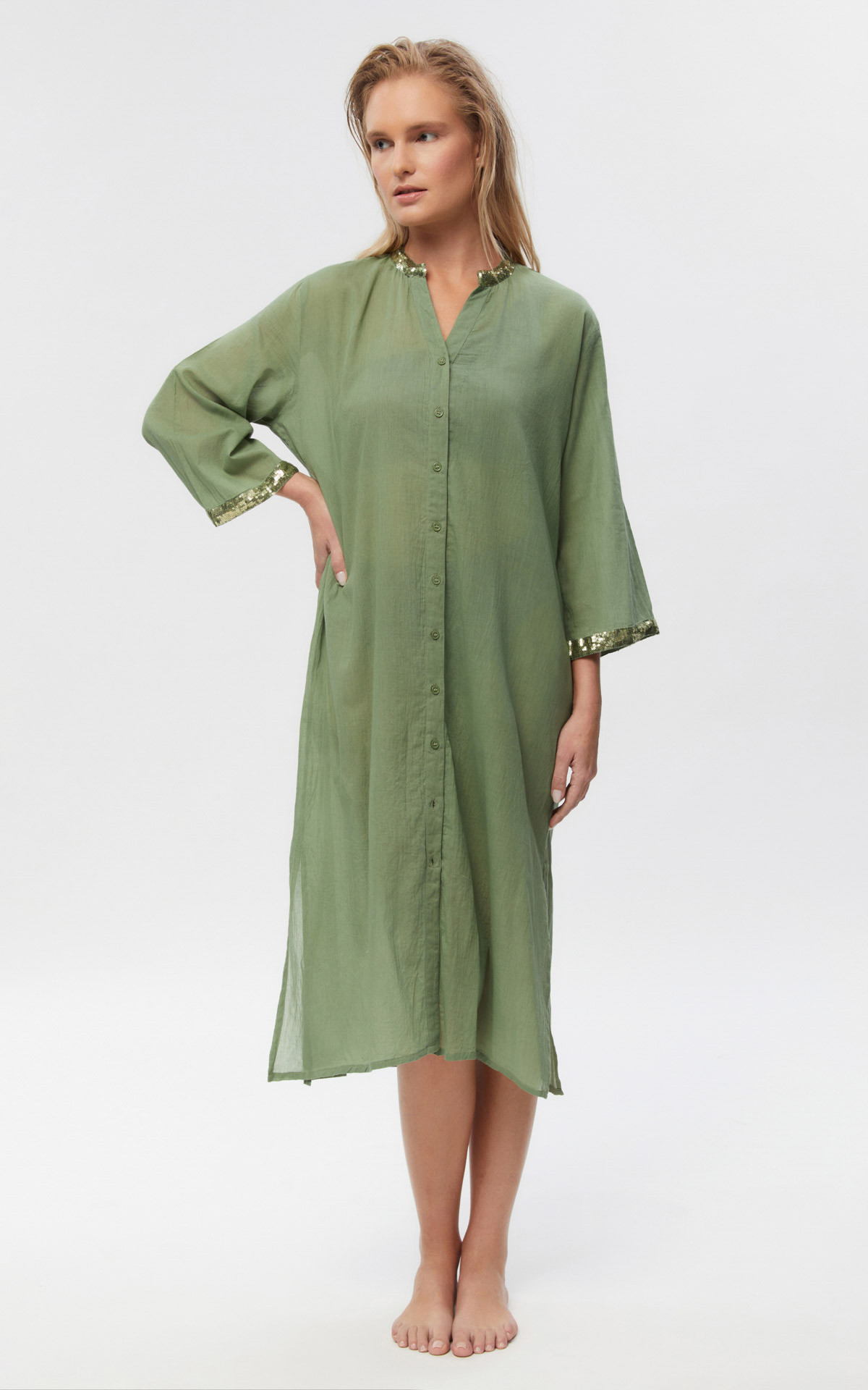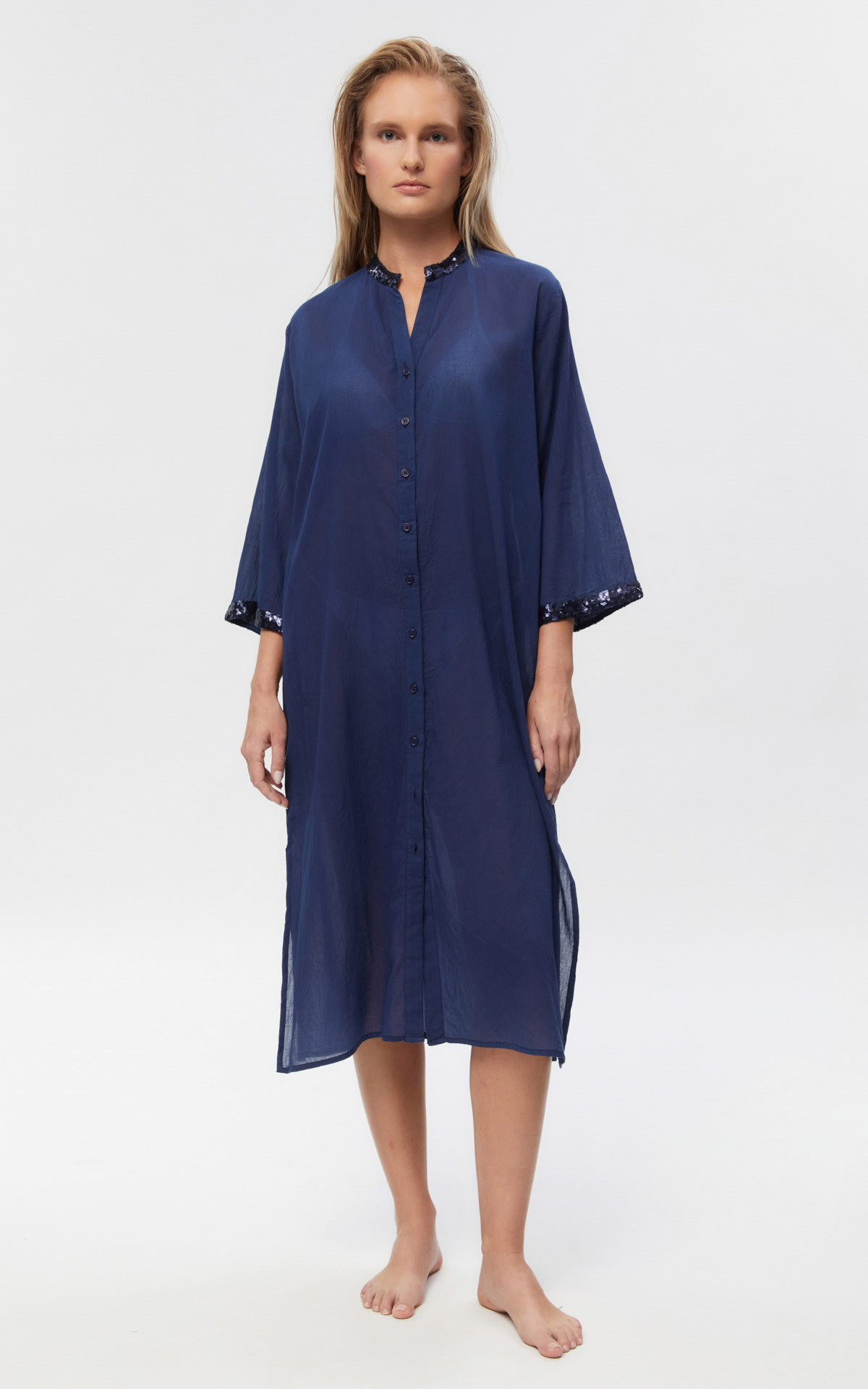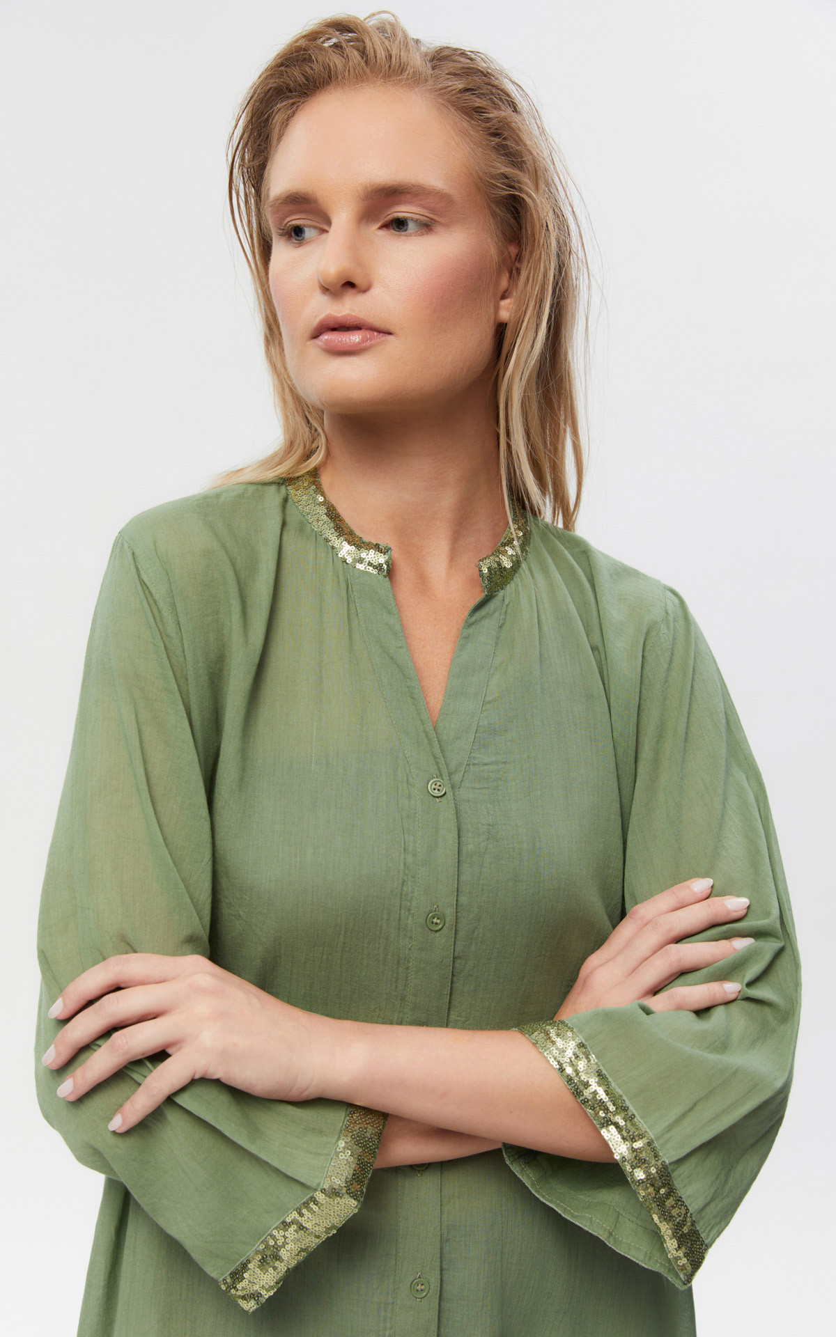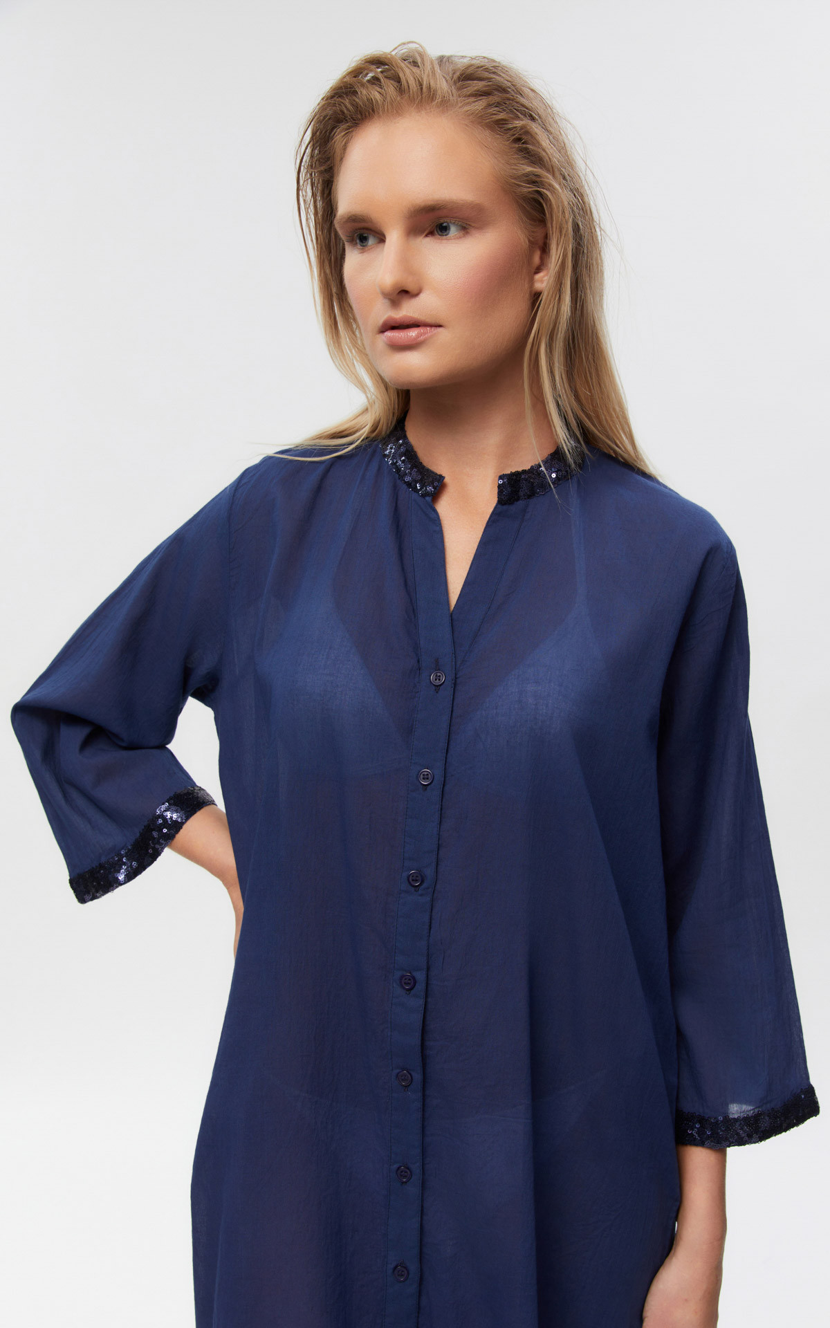 • Γυναικείο Βαμβακερό Μακρύ Πουκάμισο Φόρεμα με παγιέτες