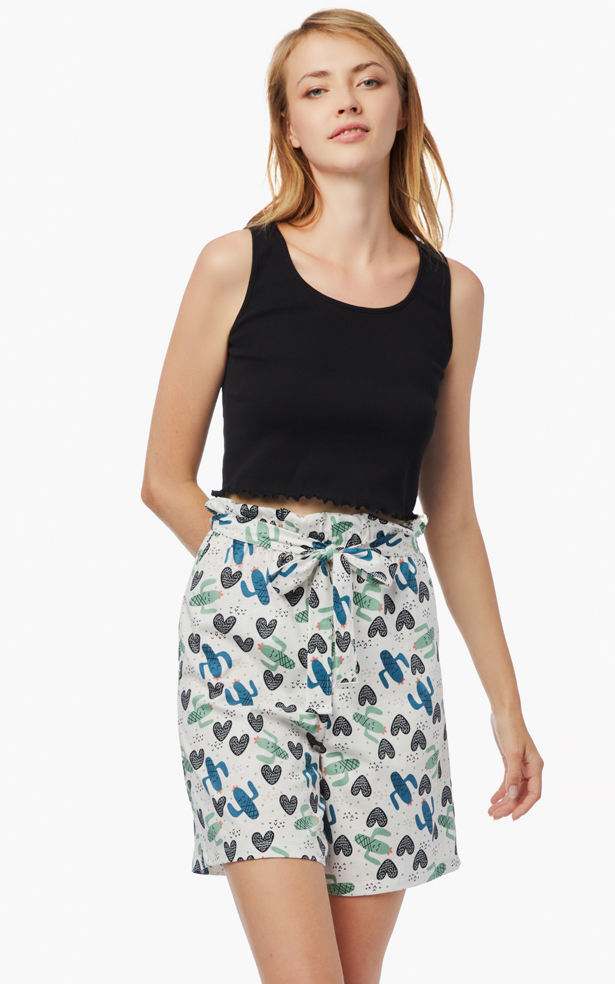 • Μακρύ Σορτς με αμάνικο Crop Top Γυναικεία Πυτζάμα