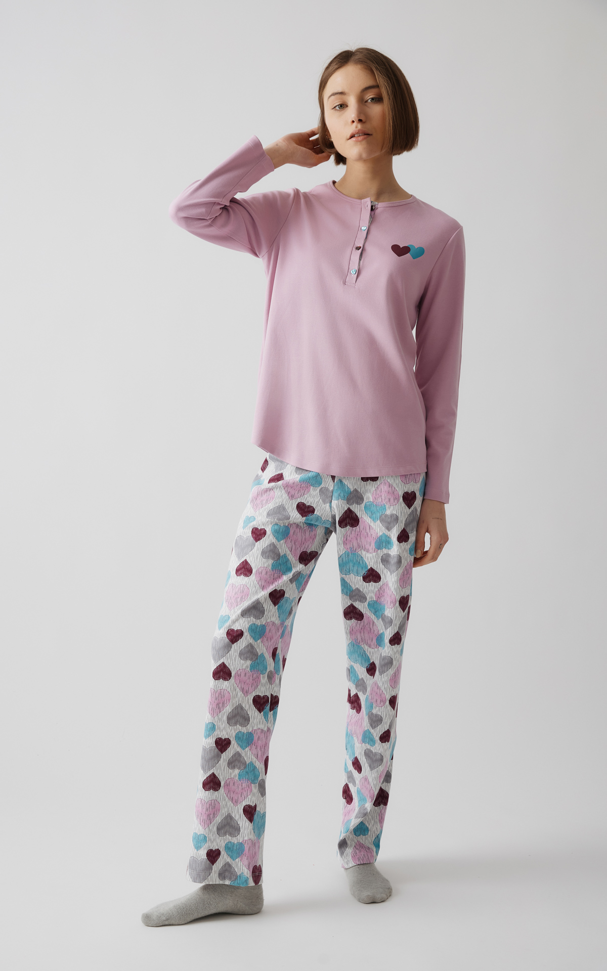 • Multi Hearts Κουμπωτή Γυναικεία Πυτζάμα με γιακά