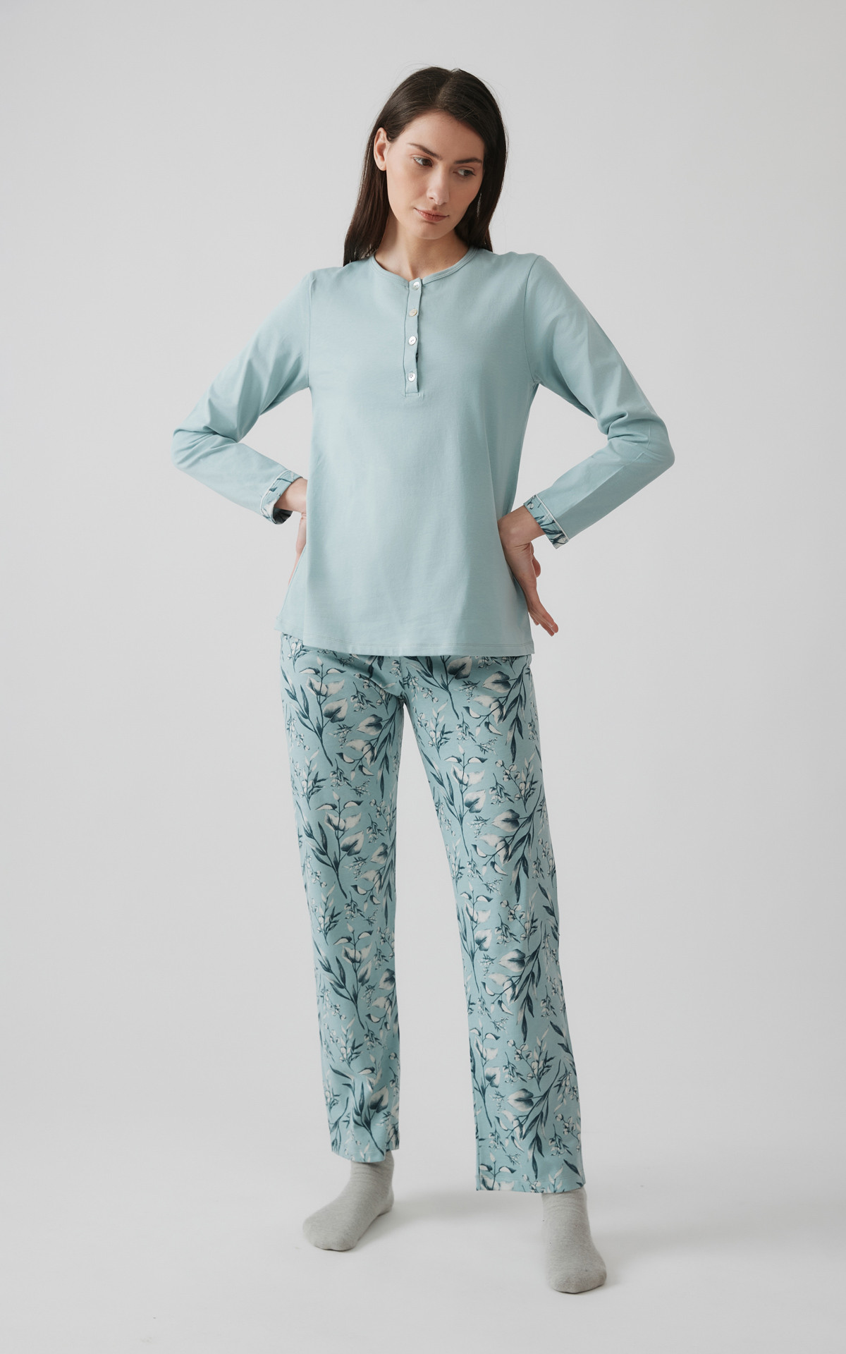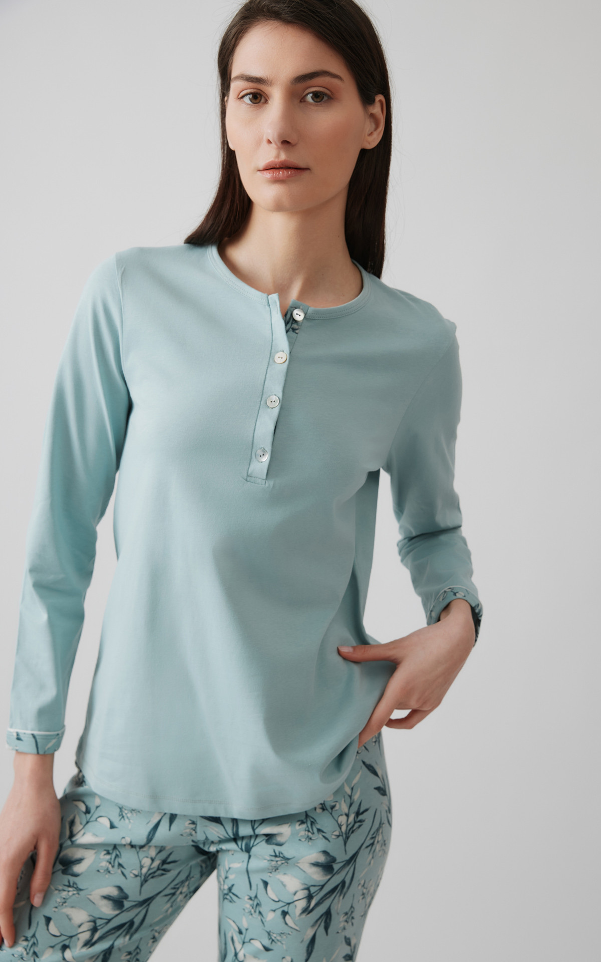 • Εμπριμέ TENCEL™ Modal Κουμπωτή Γυναικεία Πυτζάμα με λαιμόκοψη V