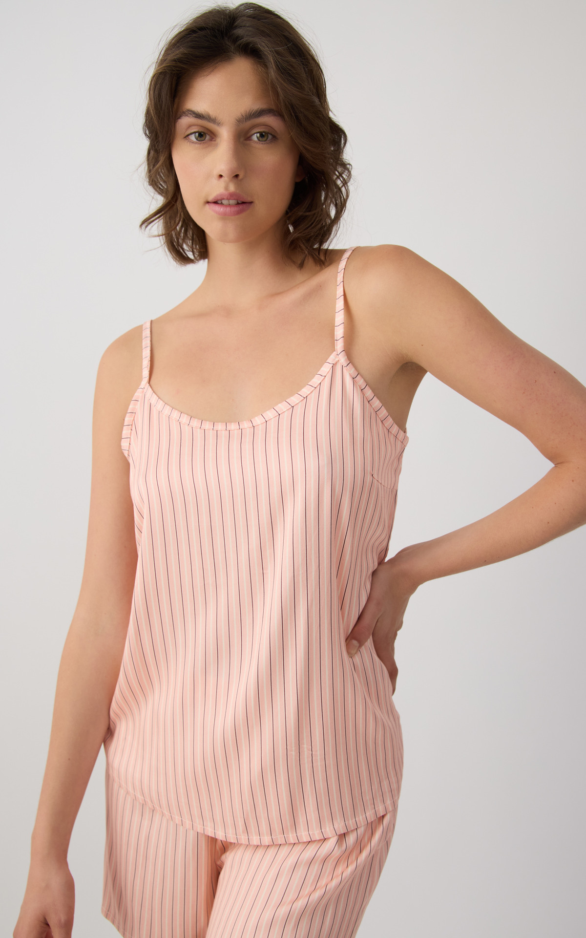 • Εμπριμέ Αμάνικη Γυναικεία Πυτζάμα με Κάπρι Παντελόνα