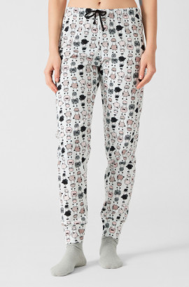 • Γυναικεία Πυτζάμα με V λαιμόκοψη και εμπριμέ παντελόνι