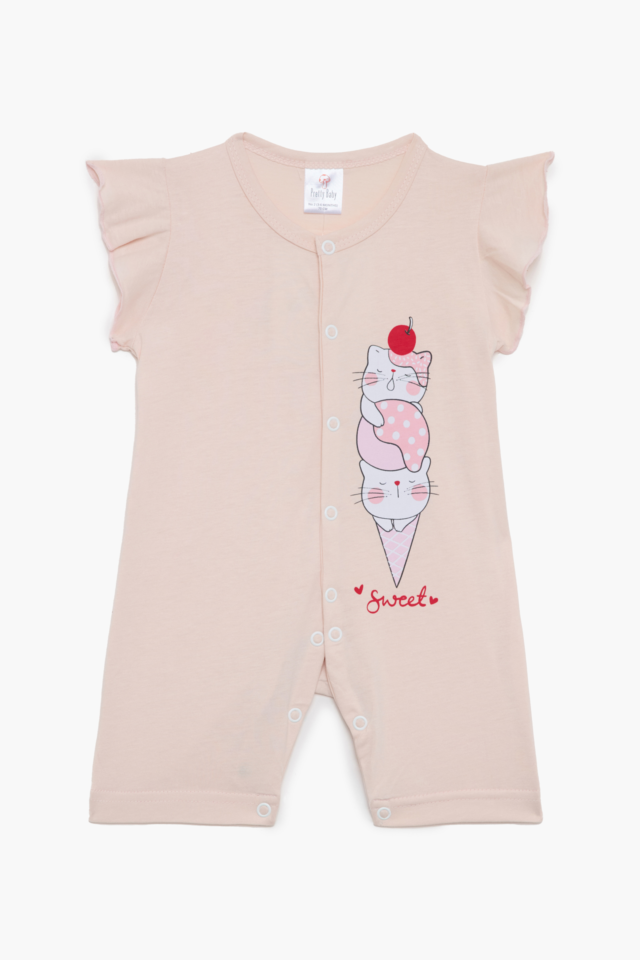 • Cute Cat Κοντομάνικο Εμπριμέ Βρεφικό Φορμάκι Εξώρουχο Ψιλή Πλέξη