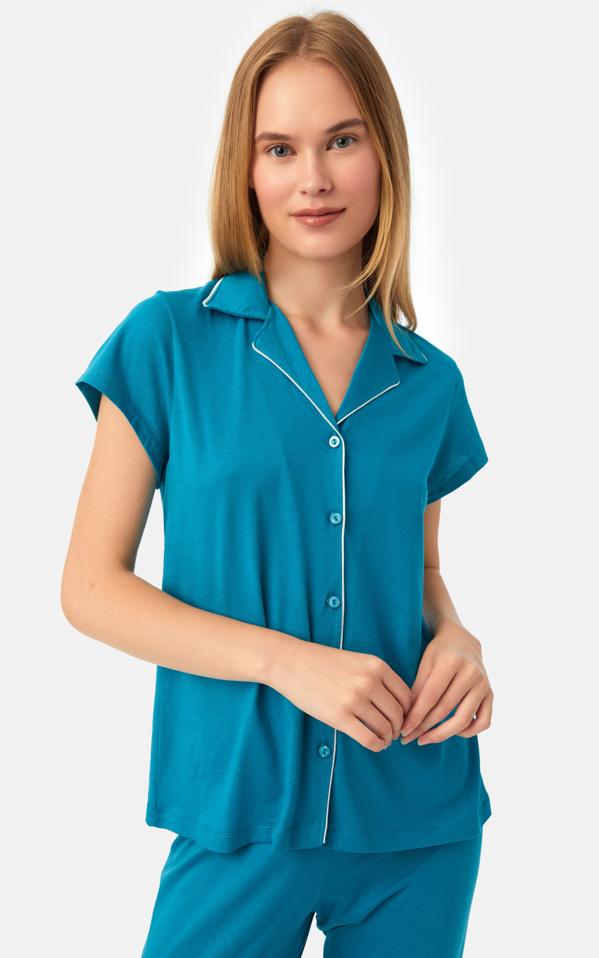 • TENCEL™ Modal Μονόχρωμη Κοντομάνικη Κάπρι Γυναικεία Πυτζάμα