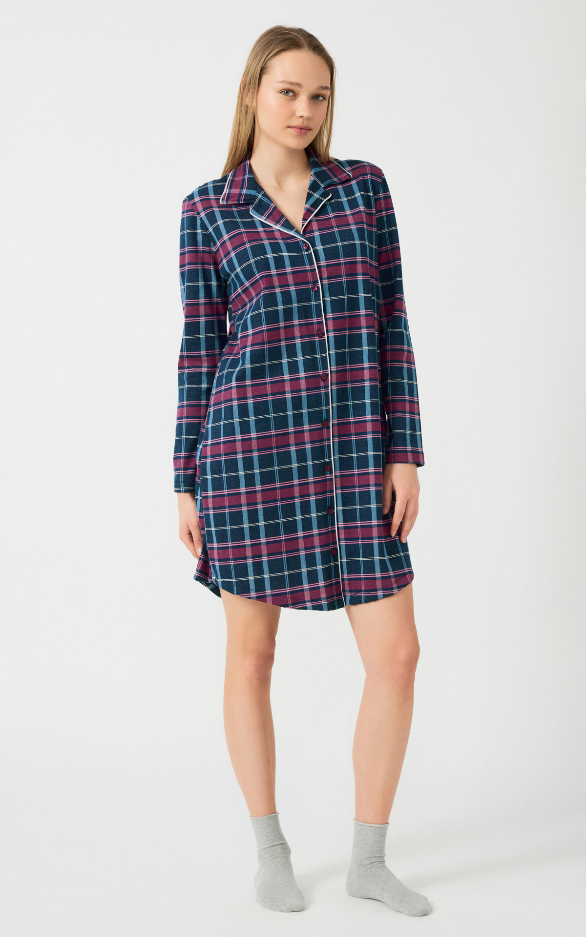 • Cozy Fleece Καρό Γυναικεία Πυτζάμα με σταθερό παντελόνι