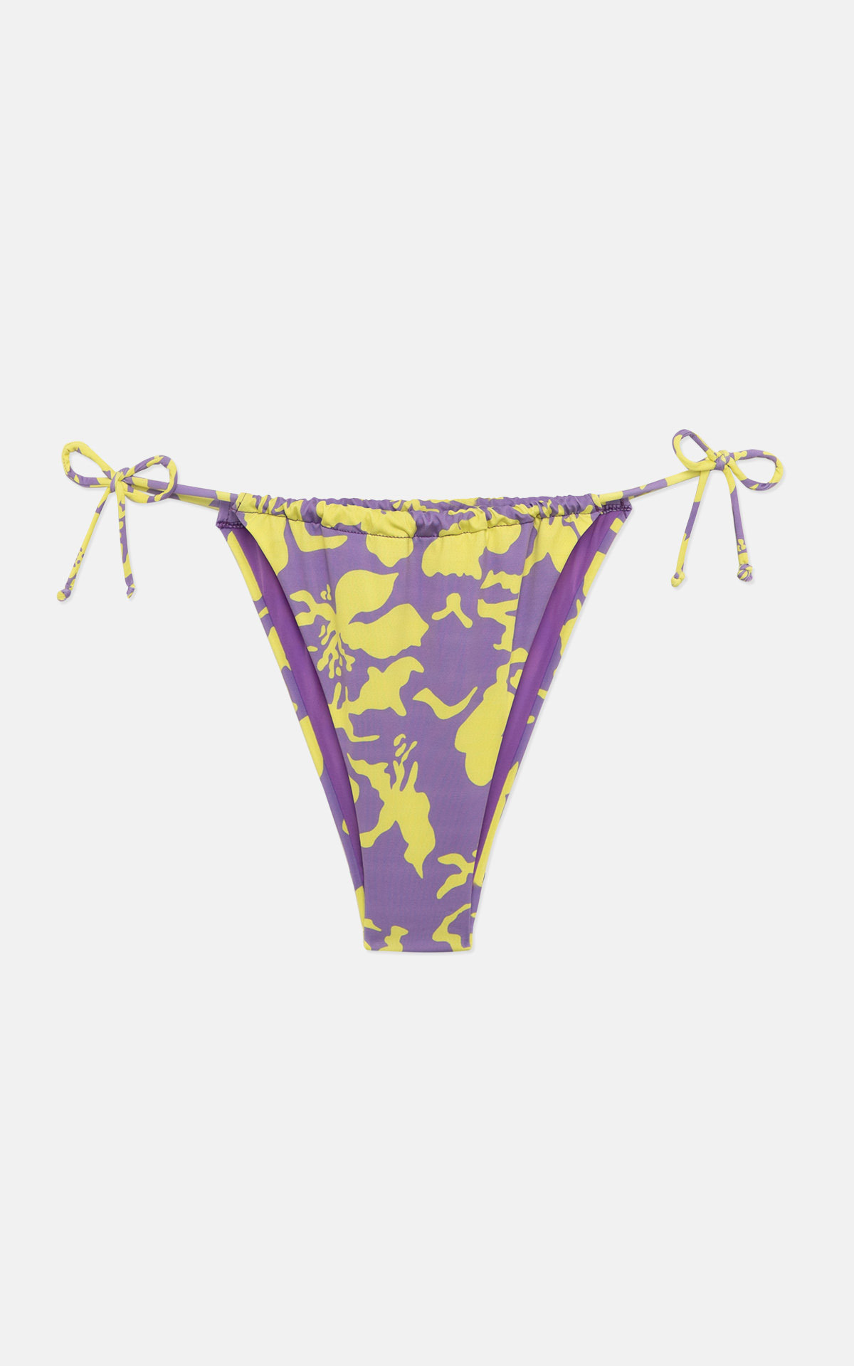 Tanga slip bikini with side ties and light gathering at the front for a better fit, tailored to your body shape. Printed fabric of excellent quality for greater comfort and perfect fit. Pair it with the other pieces from the same collection for a complete look.