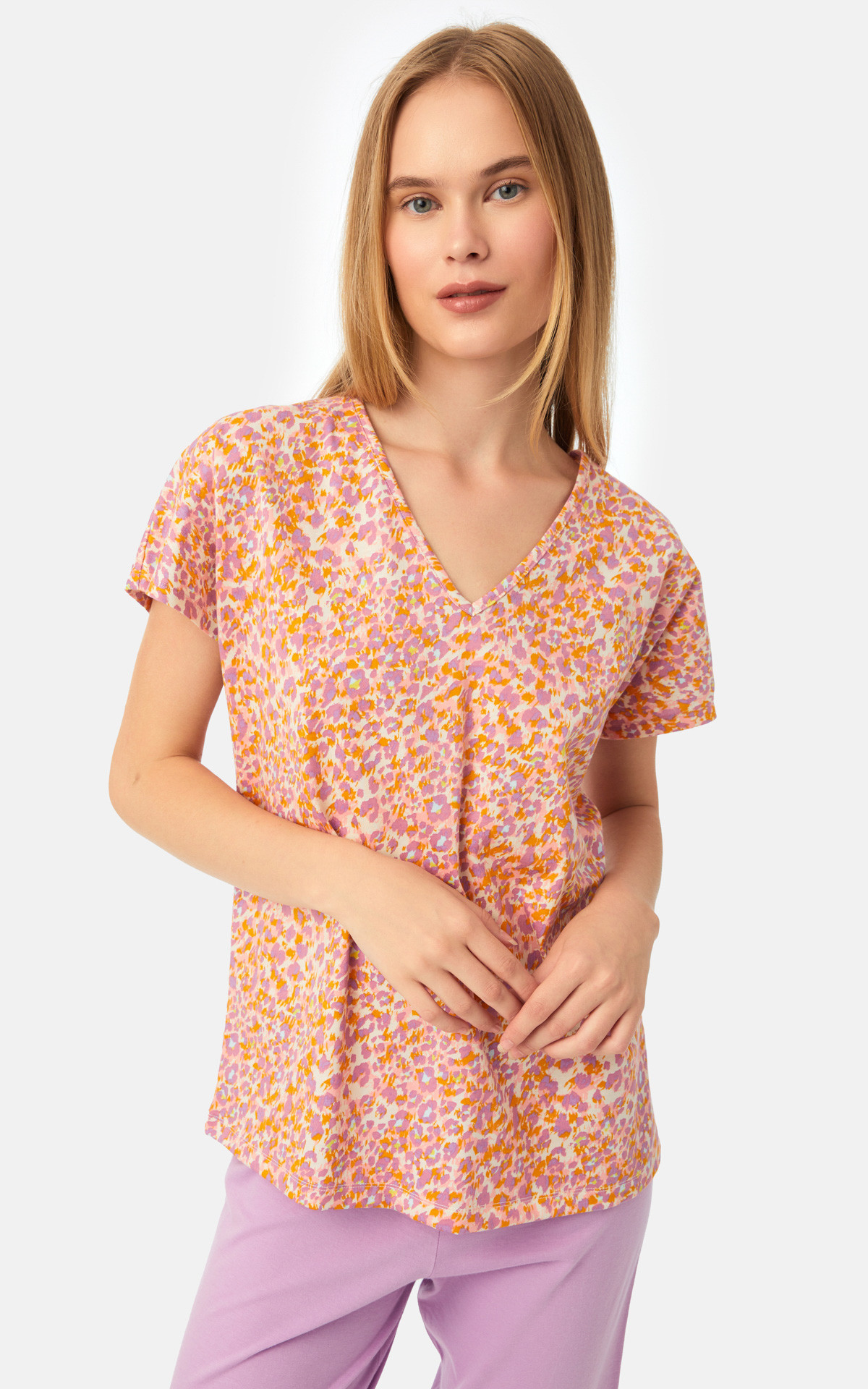 • Animal Print Short Sleeve V-Neck Long Shorts Pyjama Set