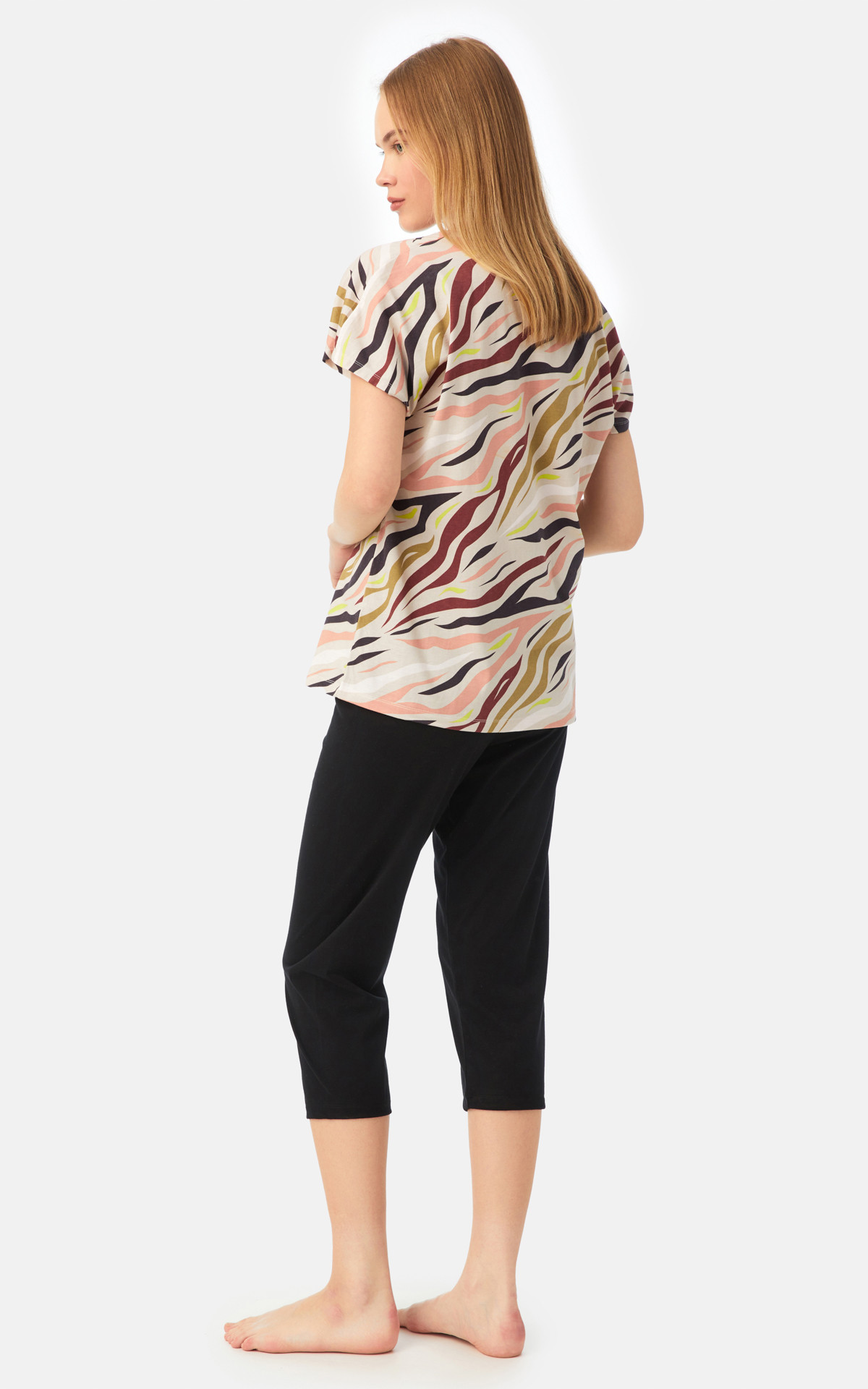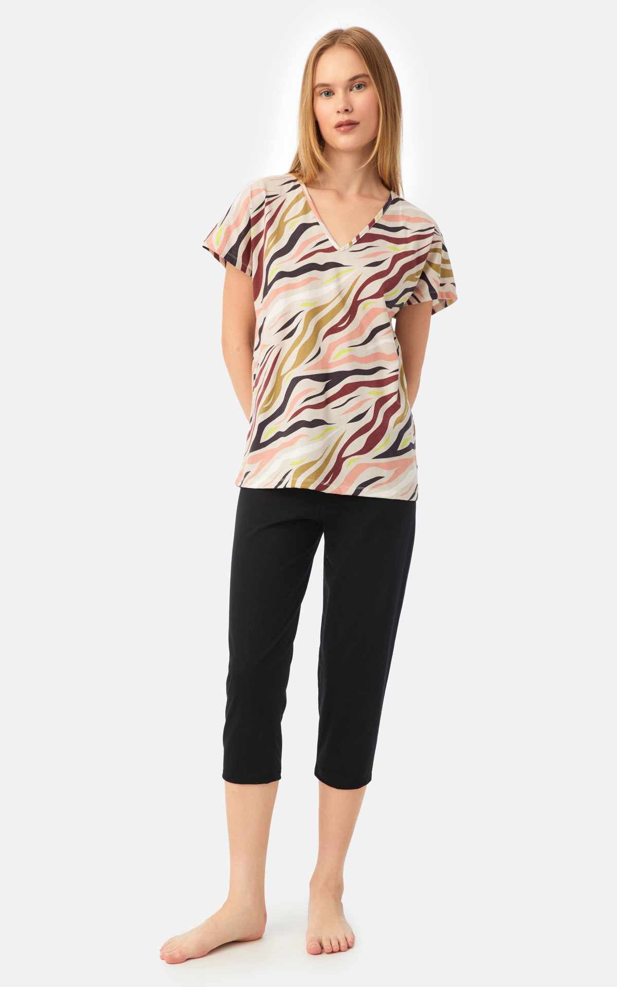 • Animal Print Short Sleeve V-Neck Capri Women's Pyjama Set