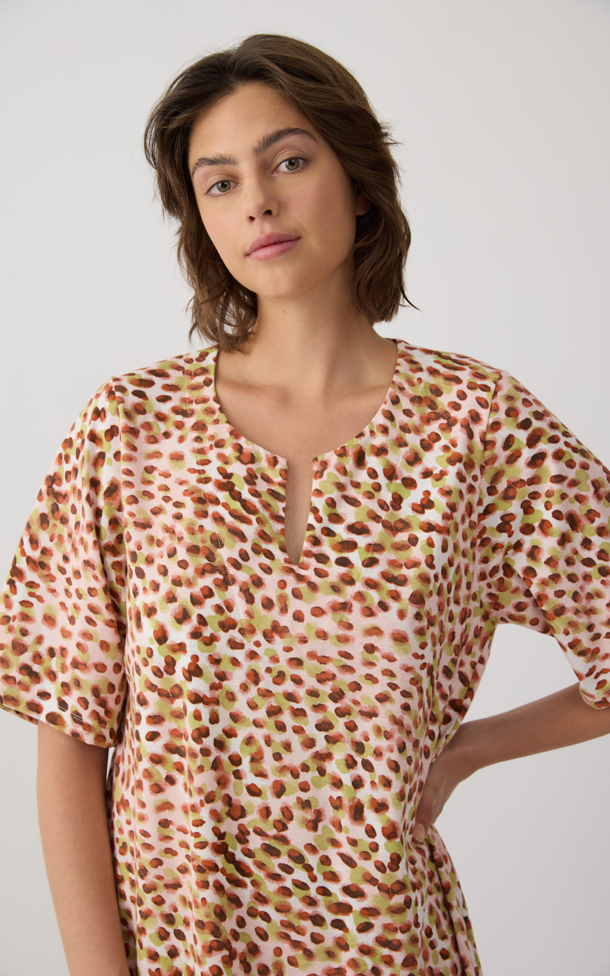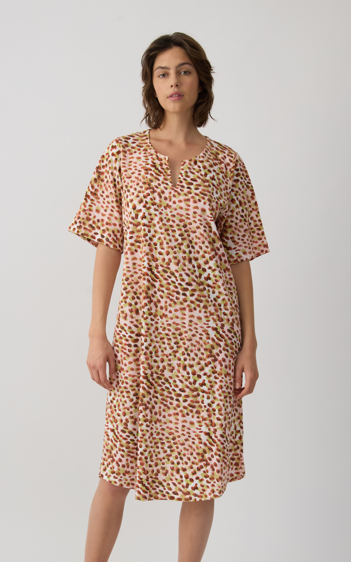 • Multi Dots Short Sleeve Women's Nightdress with placket