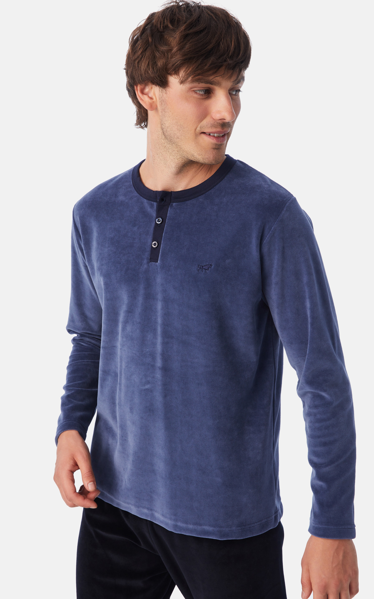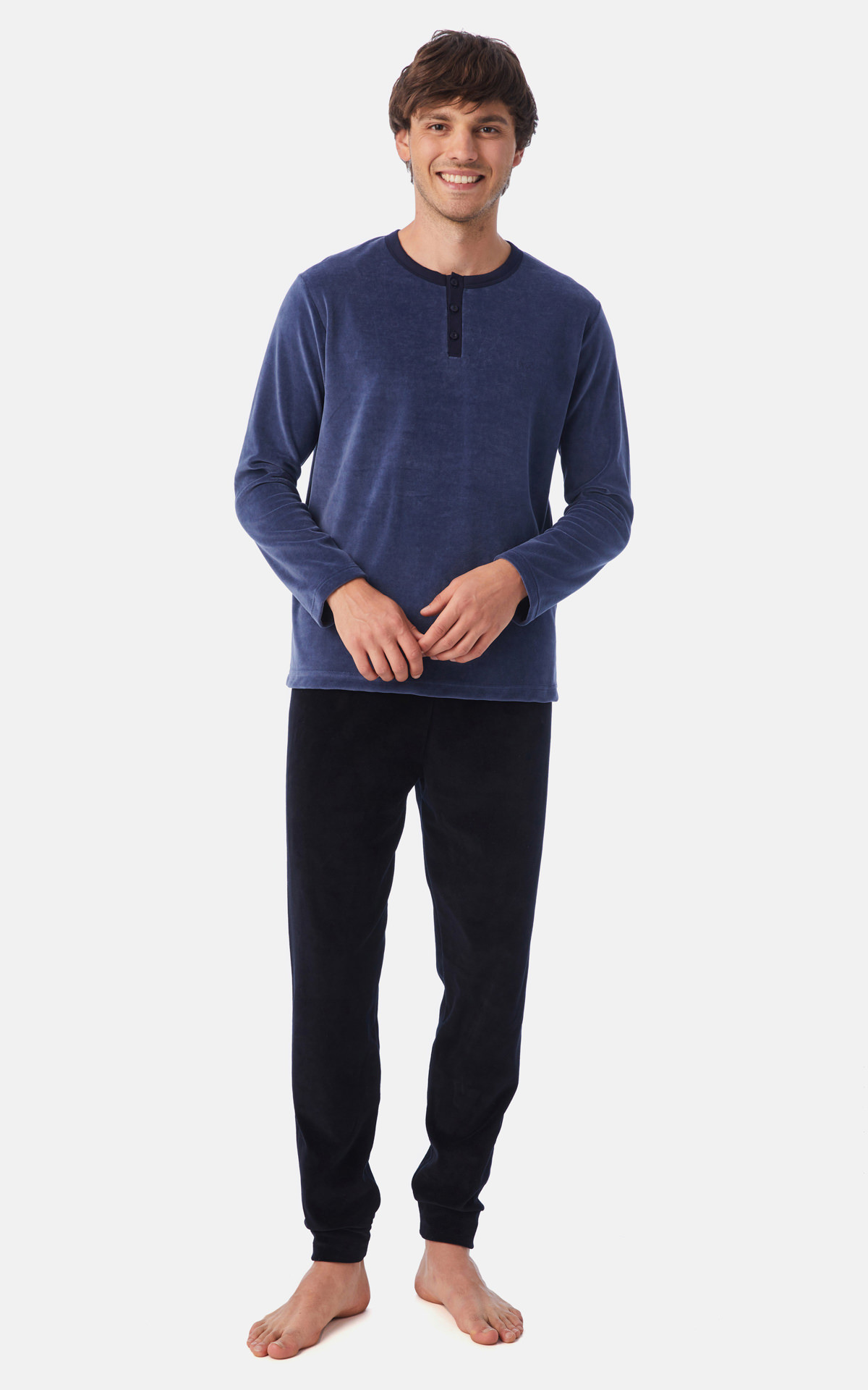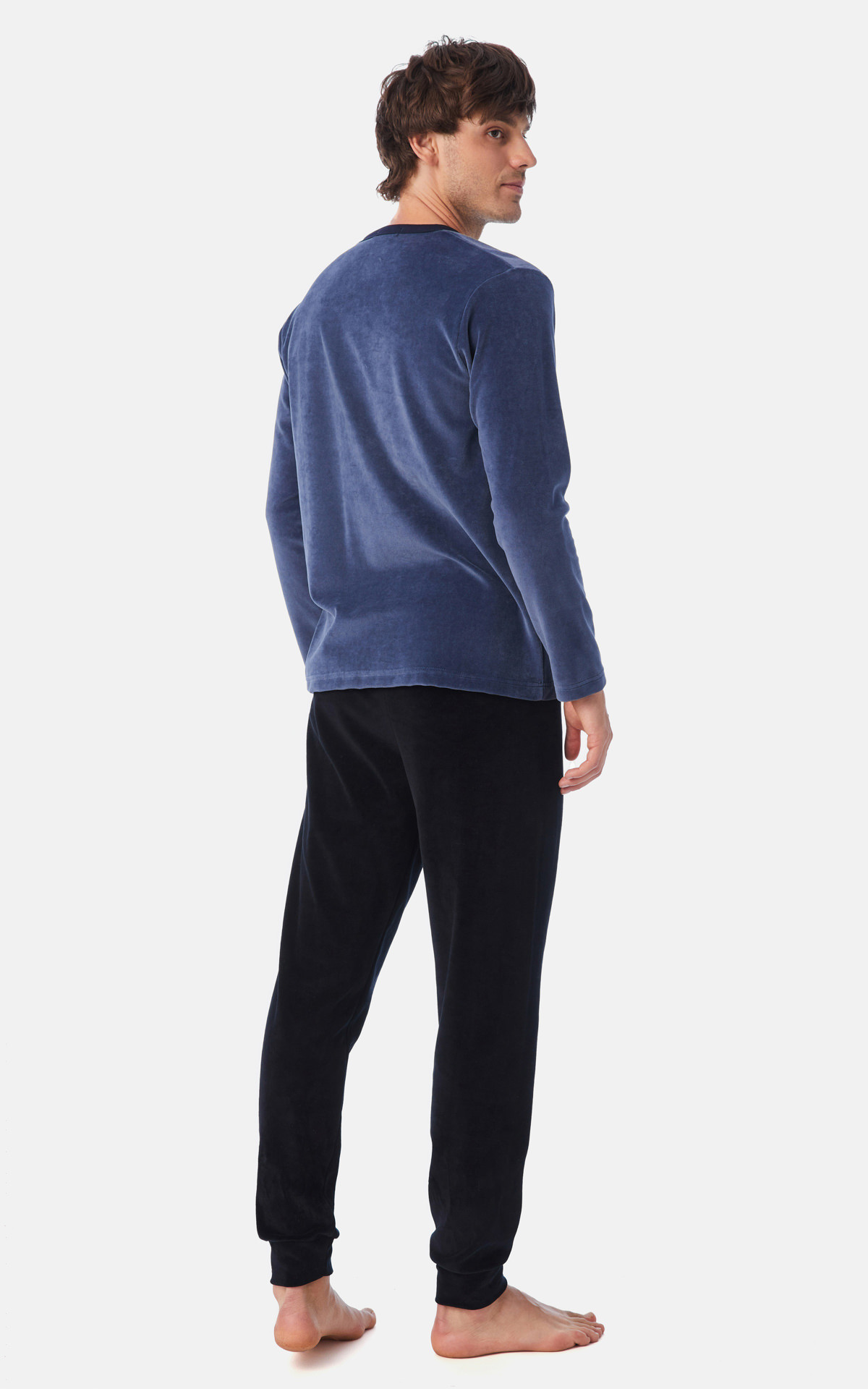• Bull Velvet V-Neck Men's Pyjama Set with contrast sleeves