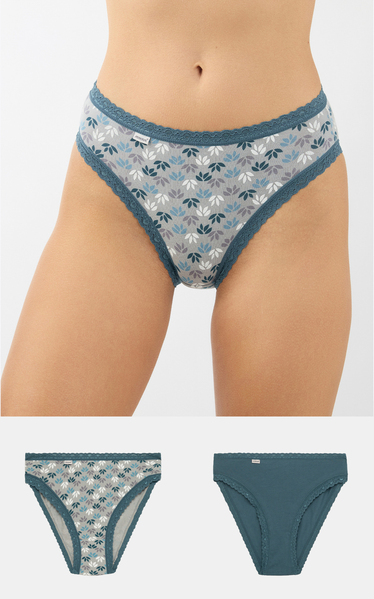 Cotton Touch Lace women's Brazil briefs 2-pack, made from 95% high-quality cotton and 5% elastane for lasting comfort and flexibility throughout the day. Featuring delicate lace trim around the edges, they offer an elegant and feminine touch with a soft feel against the skin. The pack includes one printed and one solid design, perfect for everyday comfort with refined style.