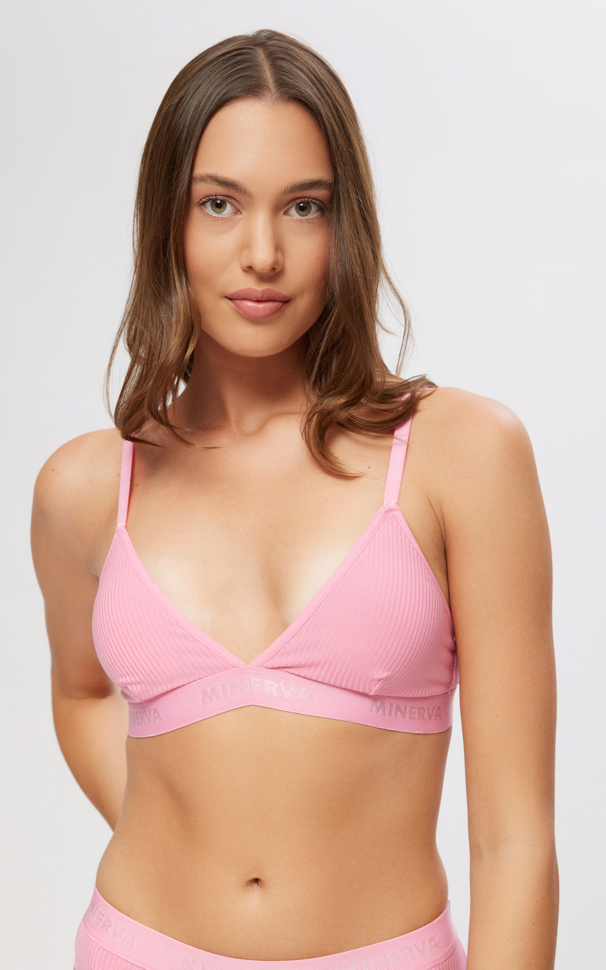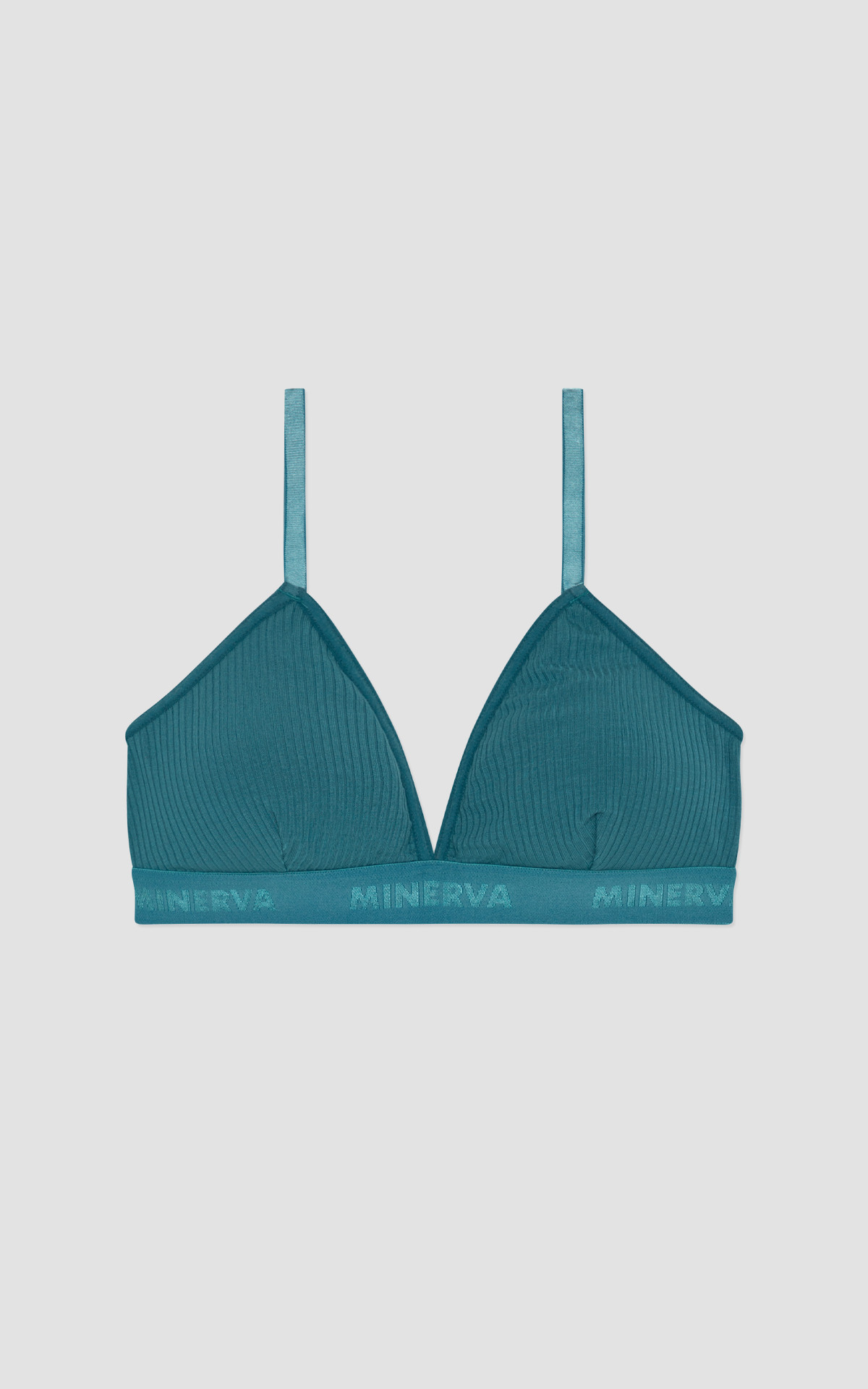 Triangular bralette Cosy Rib, featuring light removable padding and adjustable straps, with a ribbed texture. Made of 95% TENCEL™ Modal fiber and 5% elastane, it retains its color and shape, ensuring lasting quality and comfort. It has an ultra-soft, silky feel and offers a perfect fit for all body types.