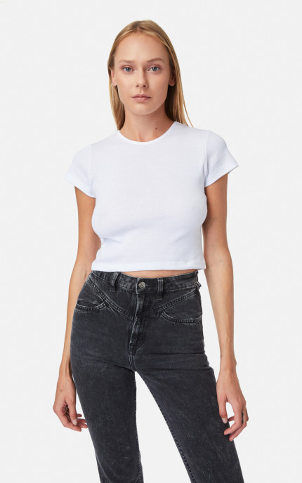 • Ribbed Woman's Short Sleeve Crew Neck Top