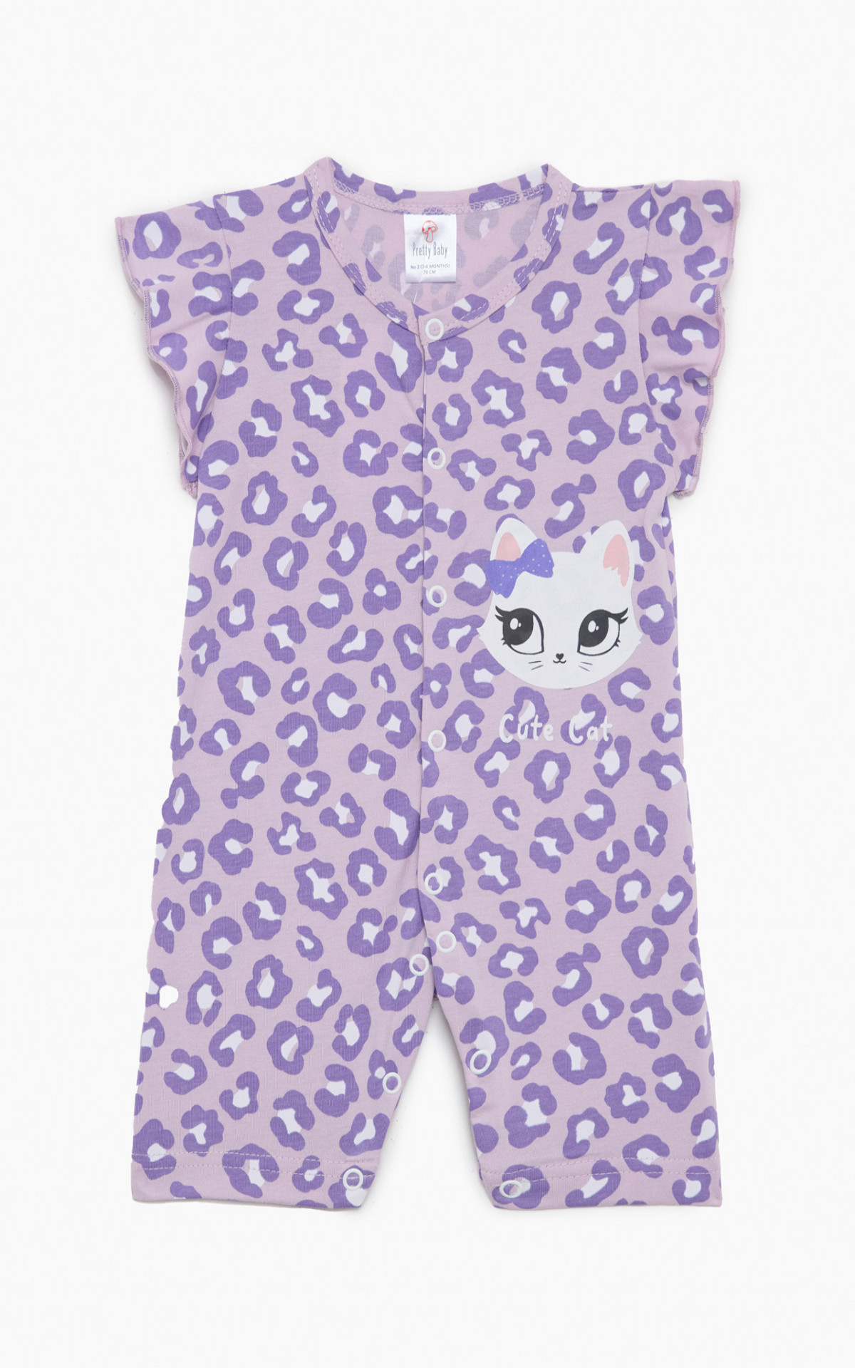 • Cute Cat Short Sleeve Printed Baby Girls' Bodysuit Outwear