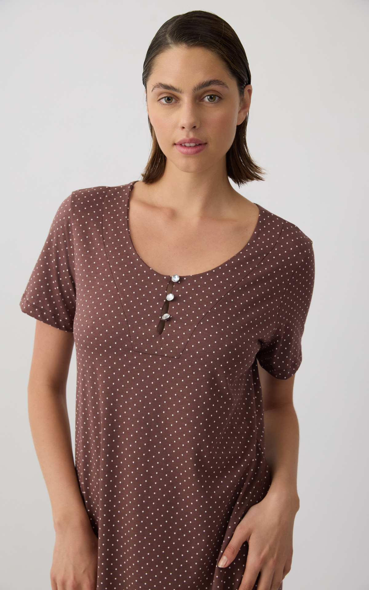 • Dots Sleeveless Strappy Women's Nightdress with placket