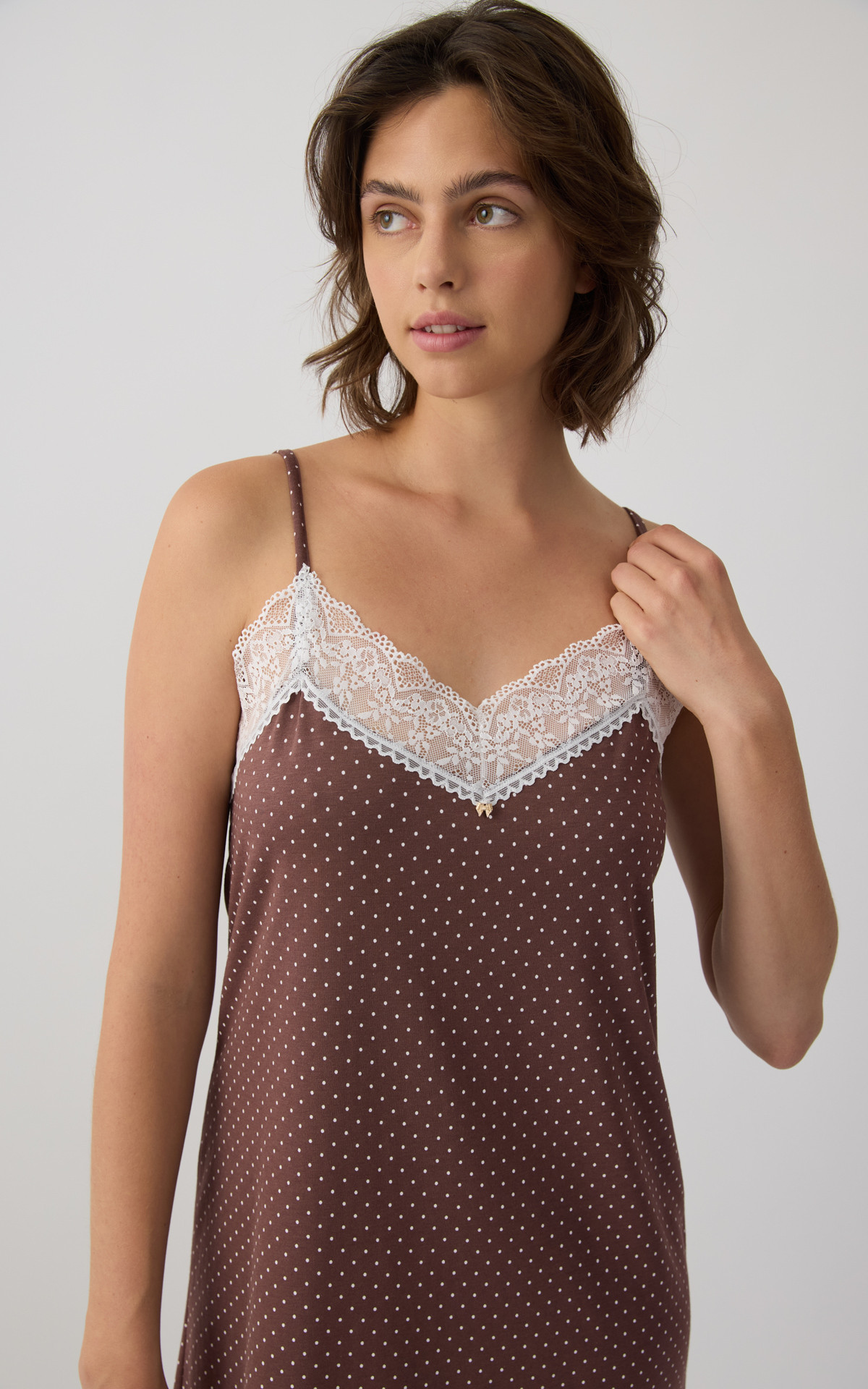 • Dots Sleeveless Strappy Women's Nightdress with placket