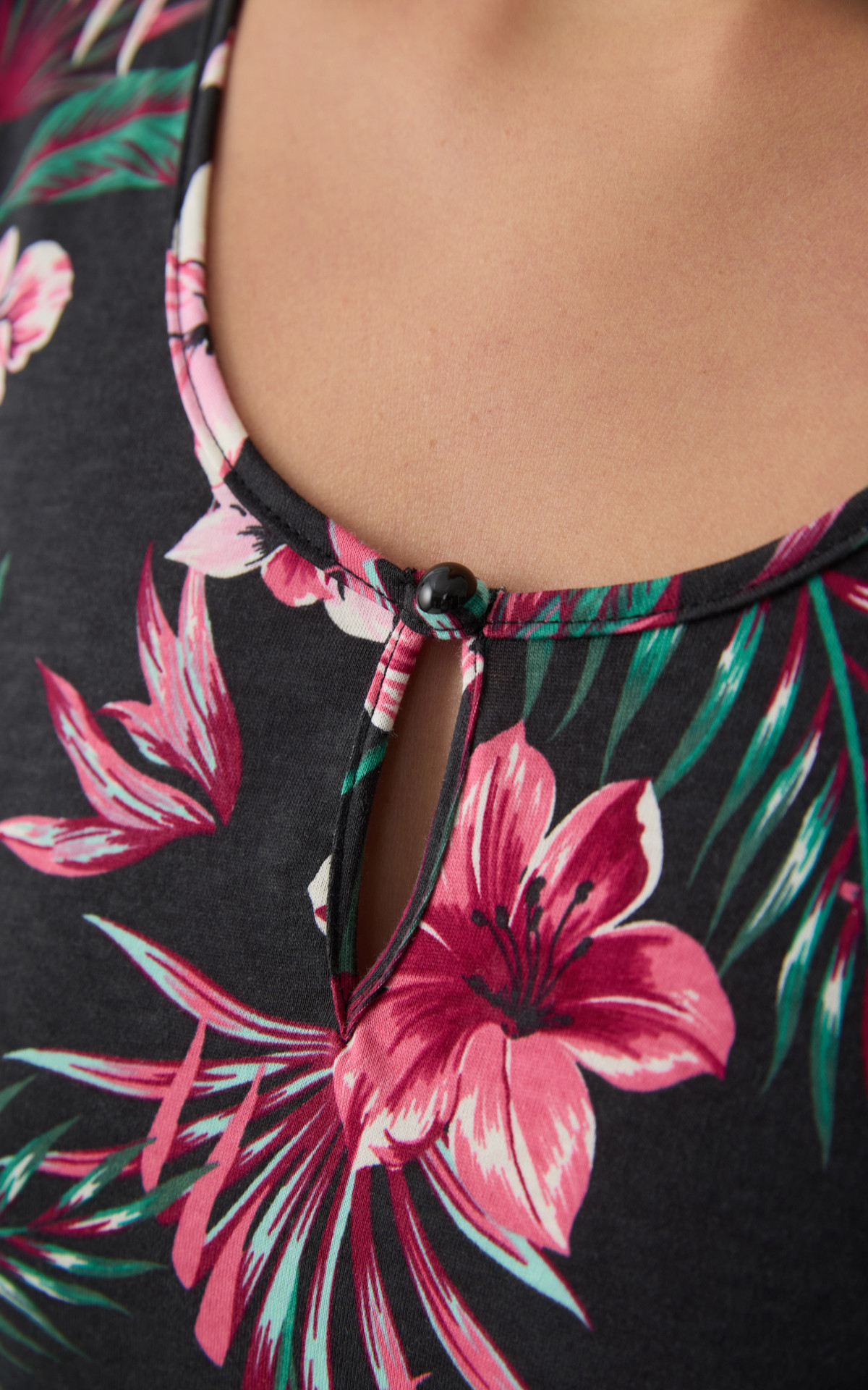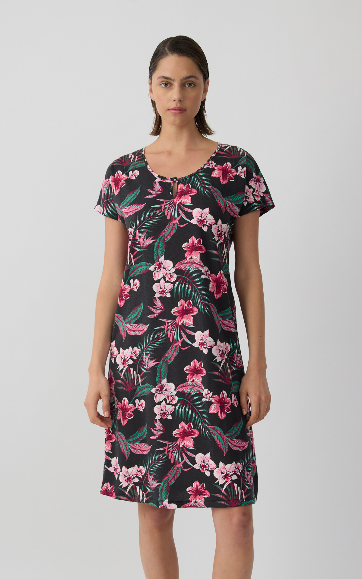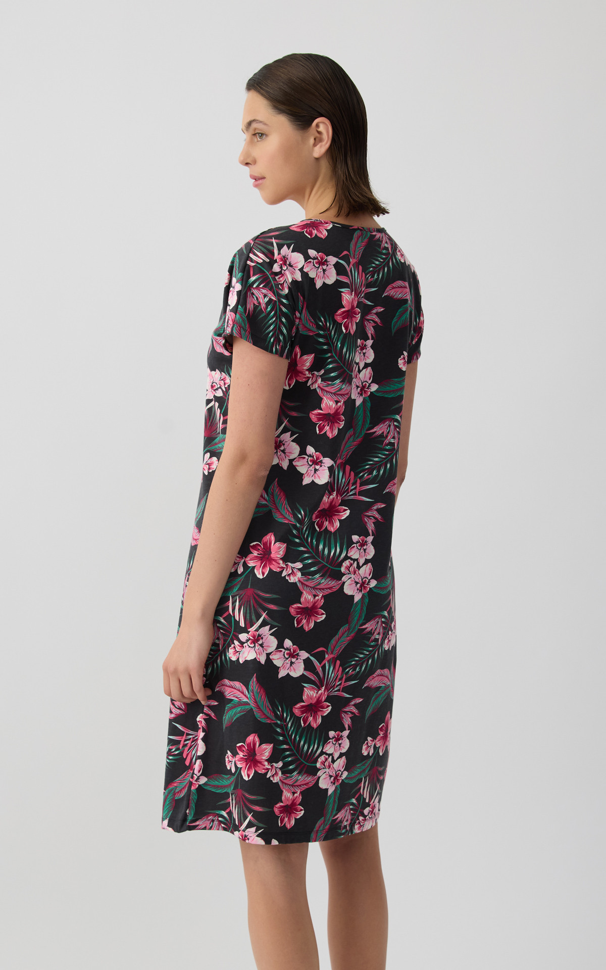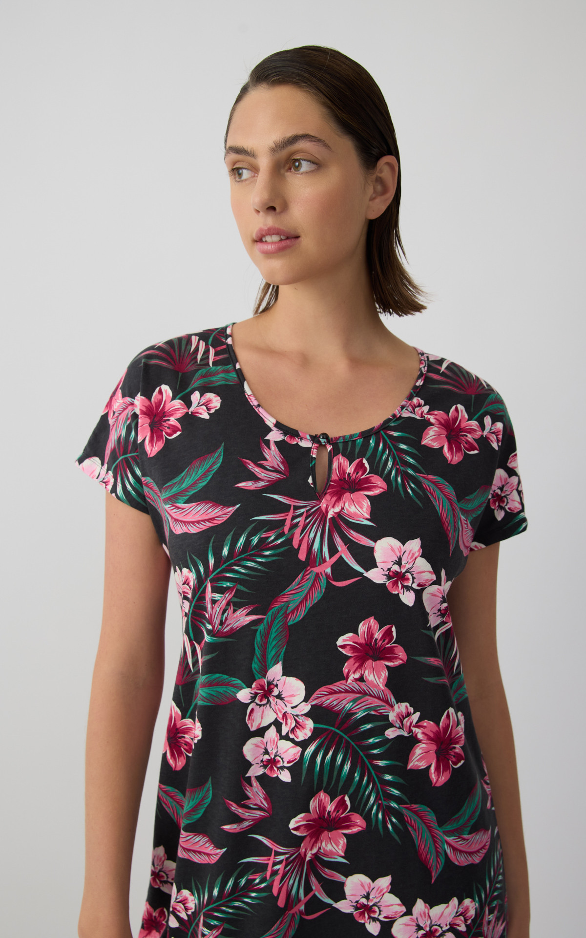 • Exotic Floral Short Sleeve Women's Nightdress with placket