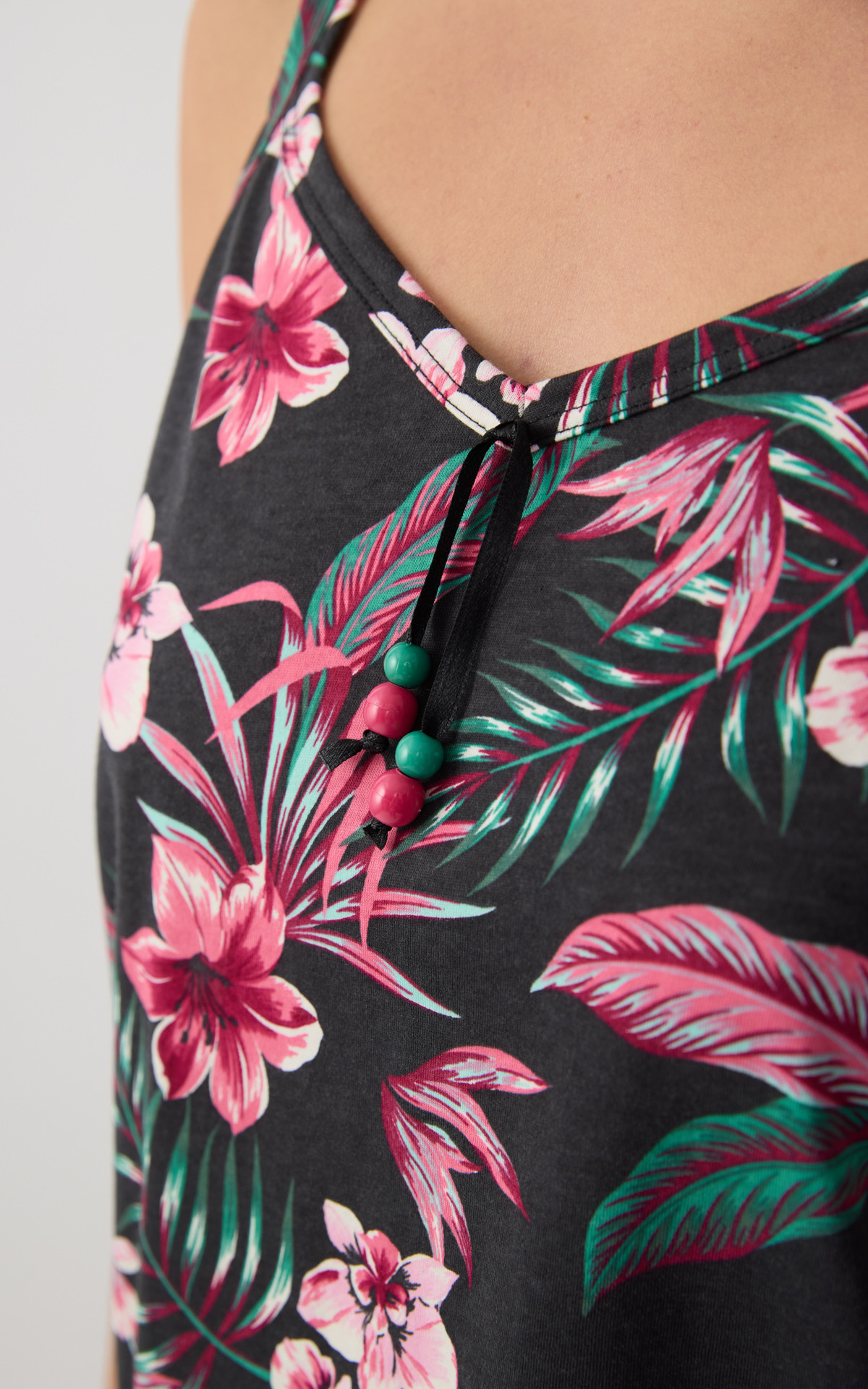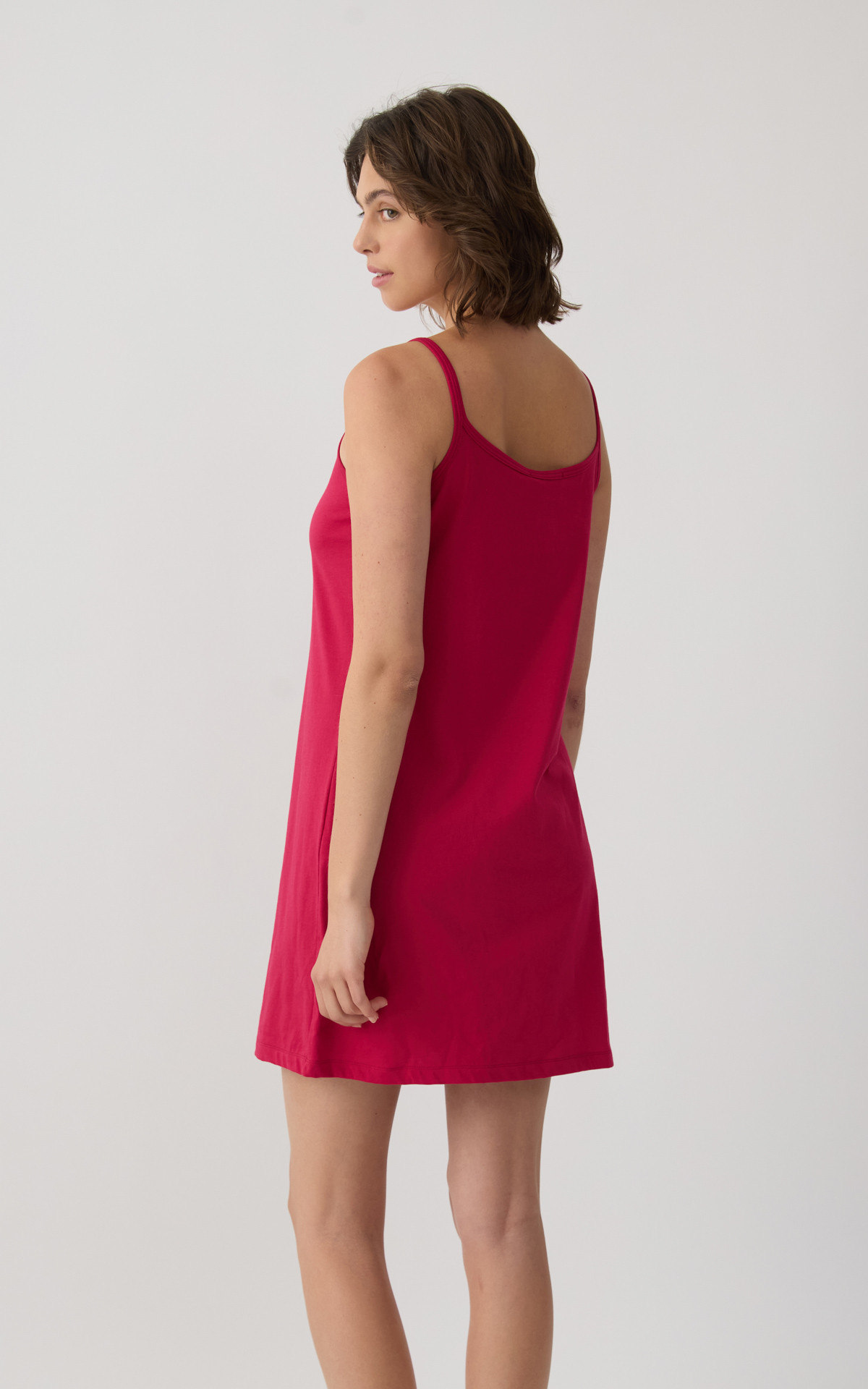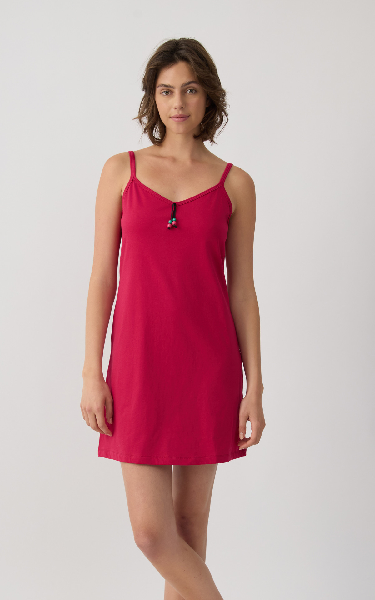 Short nightdress with thin straps and an all-over floral print that adds a feminine and summery touch. Made from 100% premium-quality cotton, it offers a soft feel, breathable comfort, and a lightweight fit throughout the night.