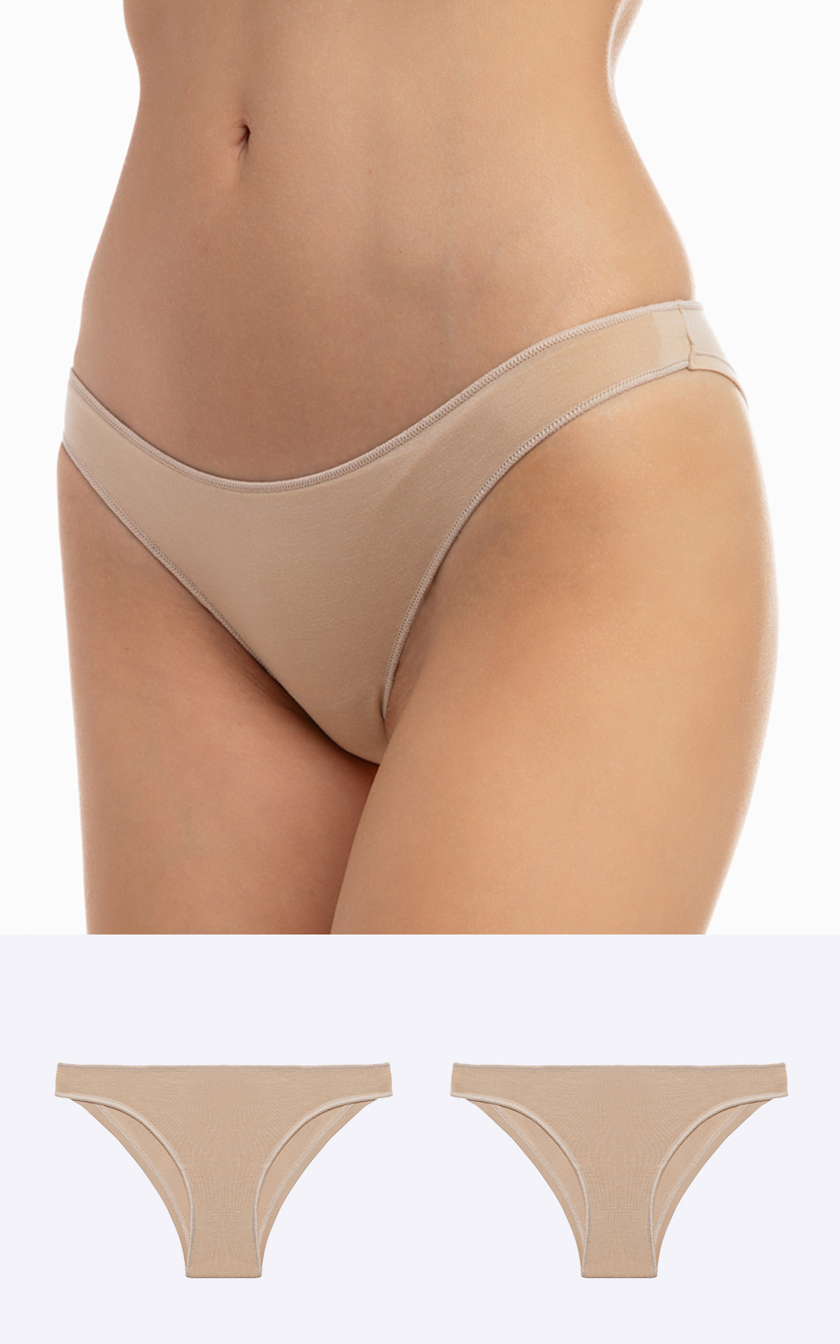 Women's rio bikini 2 pieces panties with invisible flat seams, offers comfort and perfect fit. Made with 95% TENCEL™ Modal fiber and 5% elastane, it retains color and shape, ensuring quality and comfort.