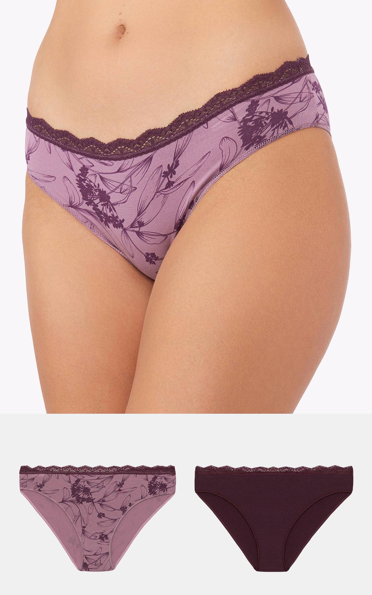 Women's bikini lace 2 pieces panties with invisible flat seams, offers comfort and perfect fit. Made with 95% TENCEL™ Modal fiber and 5% elastane, it retains color and shape, ensuring quality and comfort.