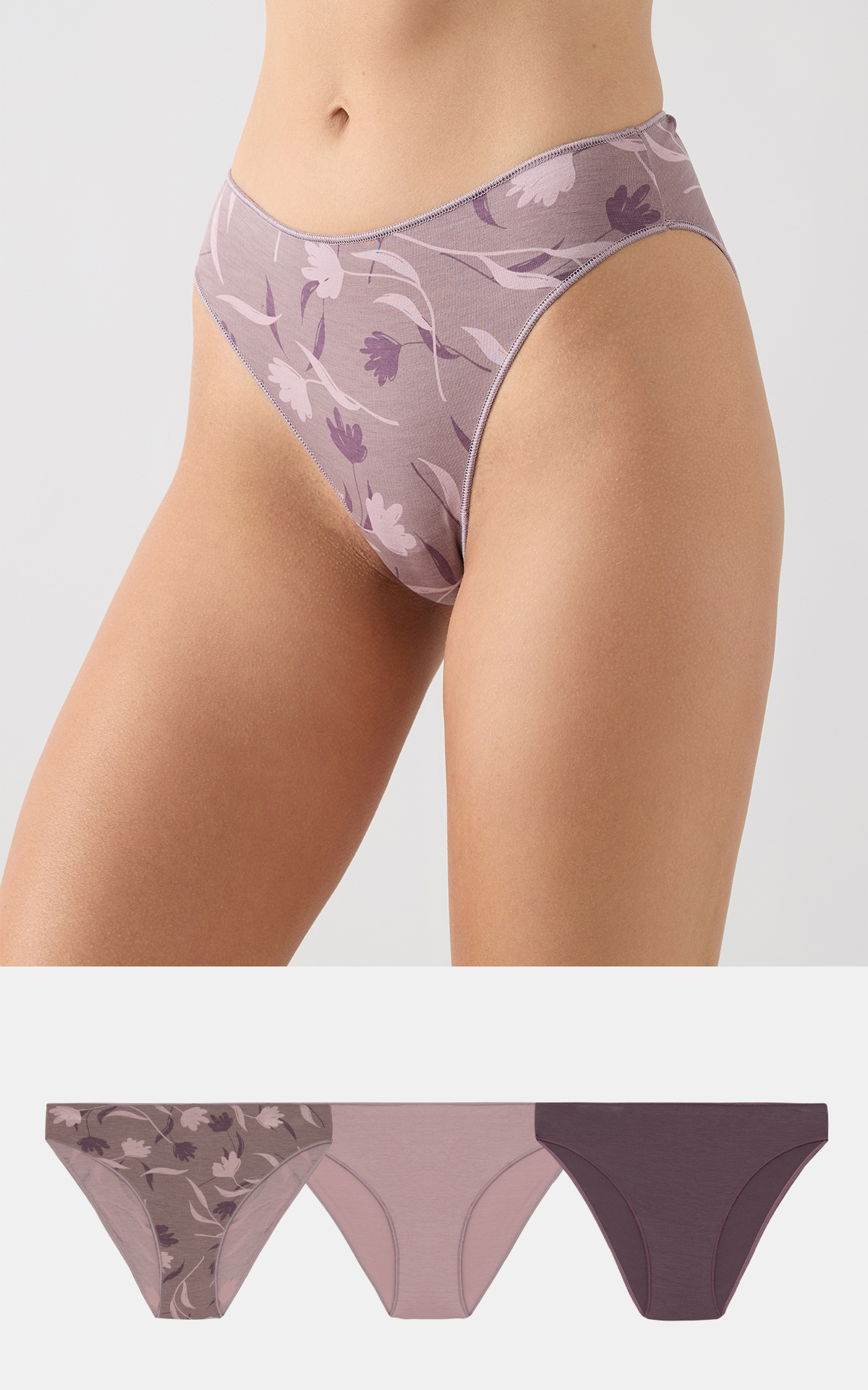 Women's brazil 3 pieces panties with invisible flat seams, offers comfort and perfect fit. Made with 95% TENCEL™ Modal fiber and 5% elastane, it retains color and shape, ensuring quality and comfort.