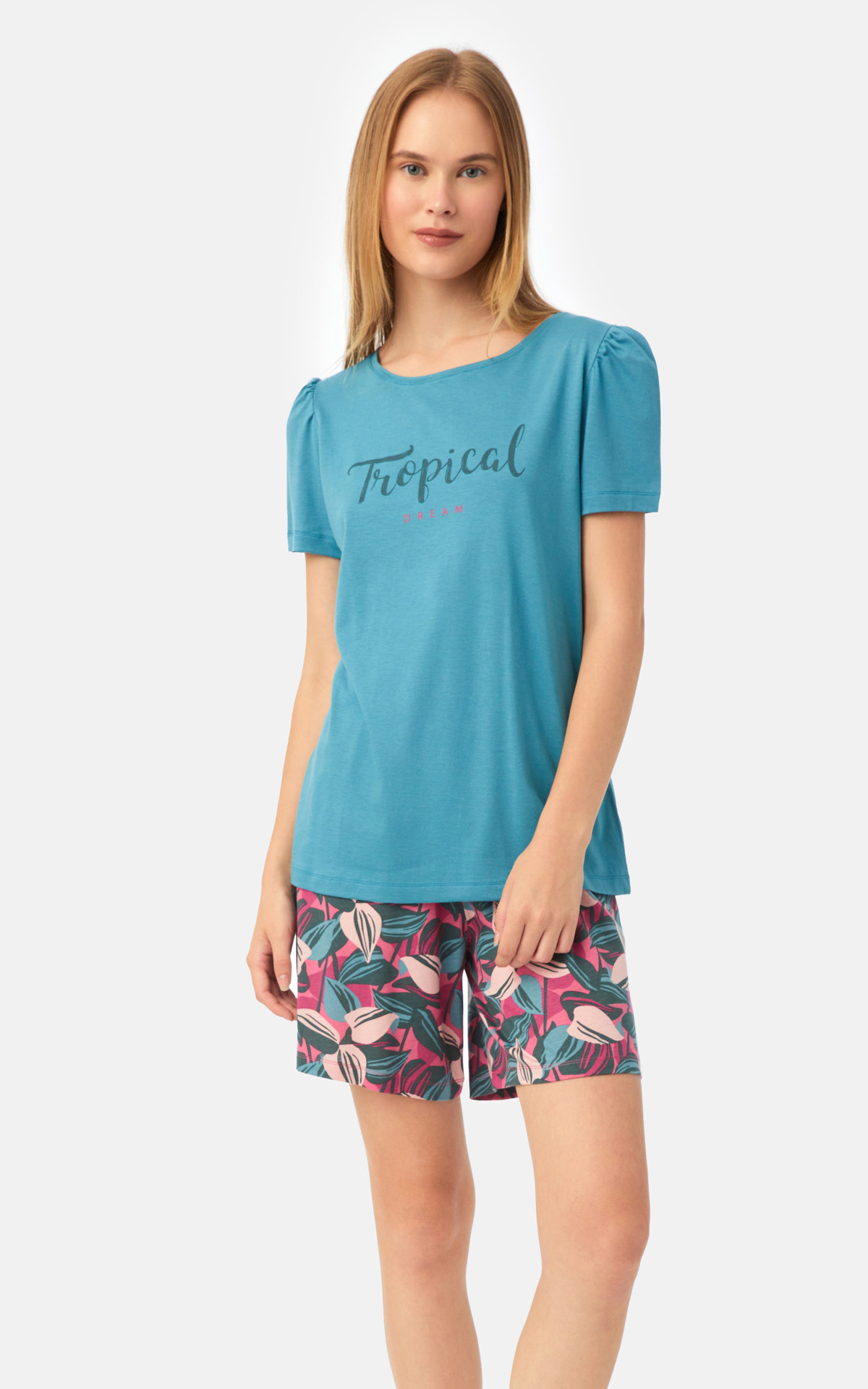 • Floral Capri Shortsleeve Women's Pyjama Set w/ TENCEL™ Modal