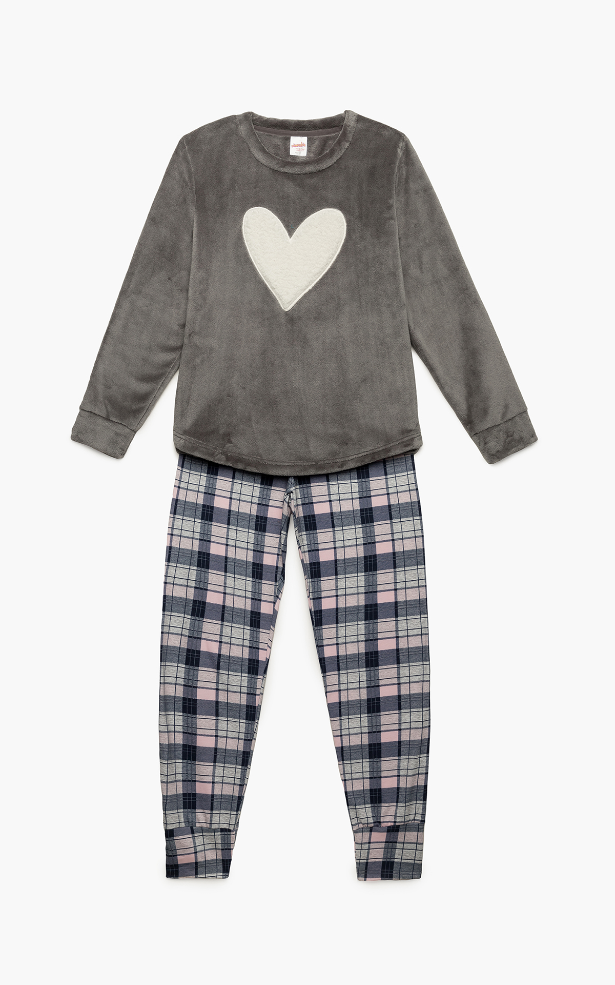 • Girls' Pyjama Set with Fleece Top & Printed Pants