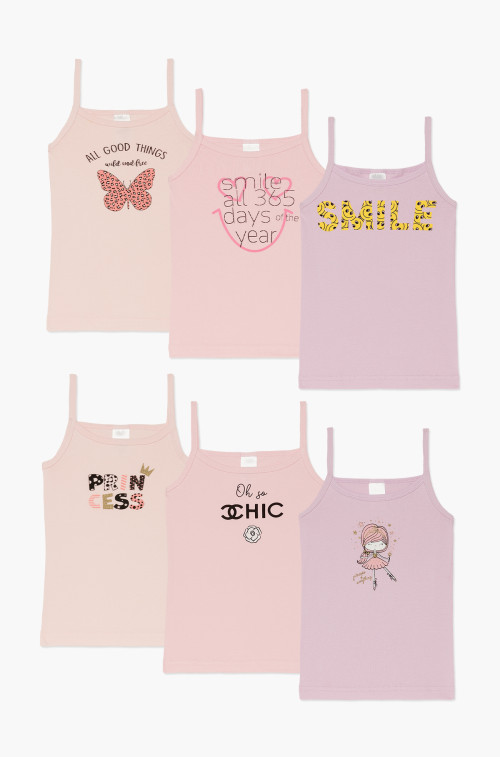 Girls' Sleeveless Strappy Undershirt 6pcs