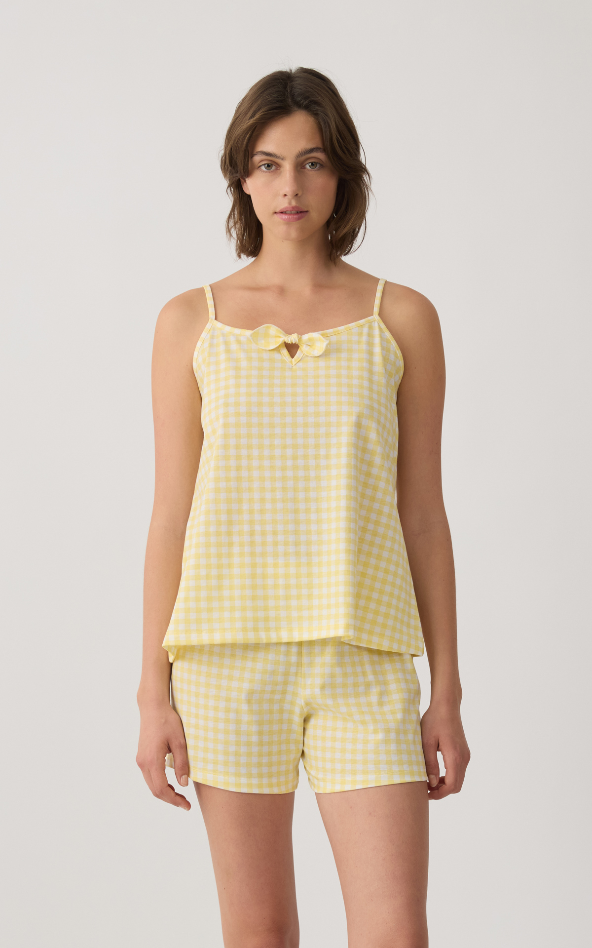 • Lemon Plaid Sleeveless Strappy Women's Nightdress