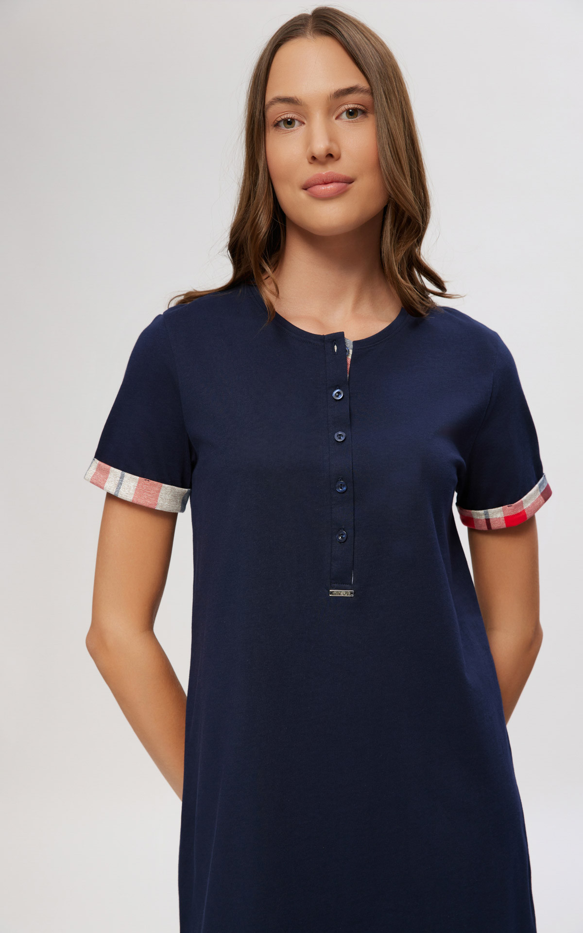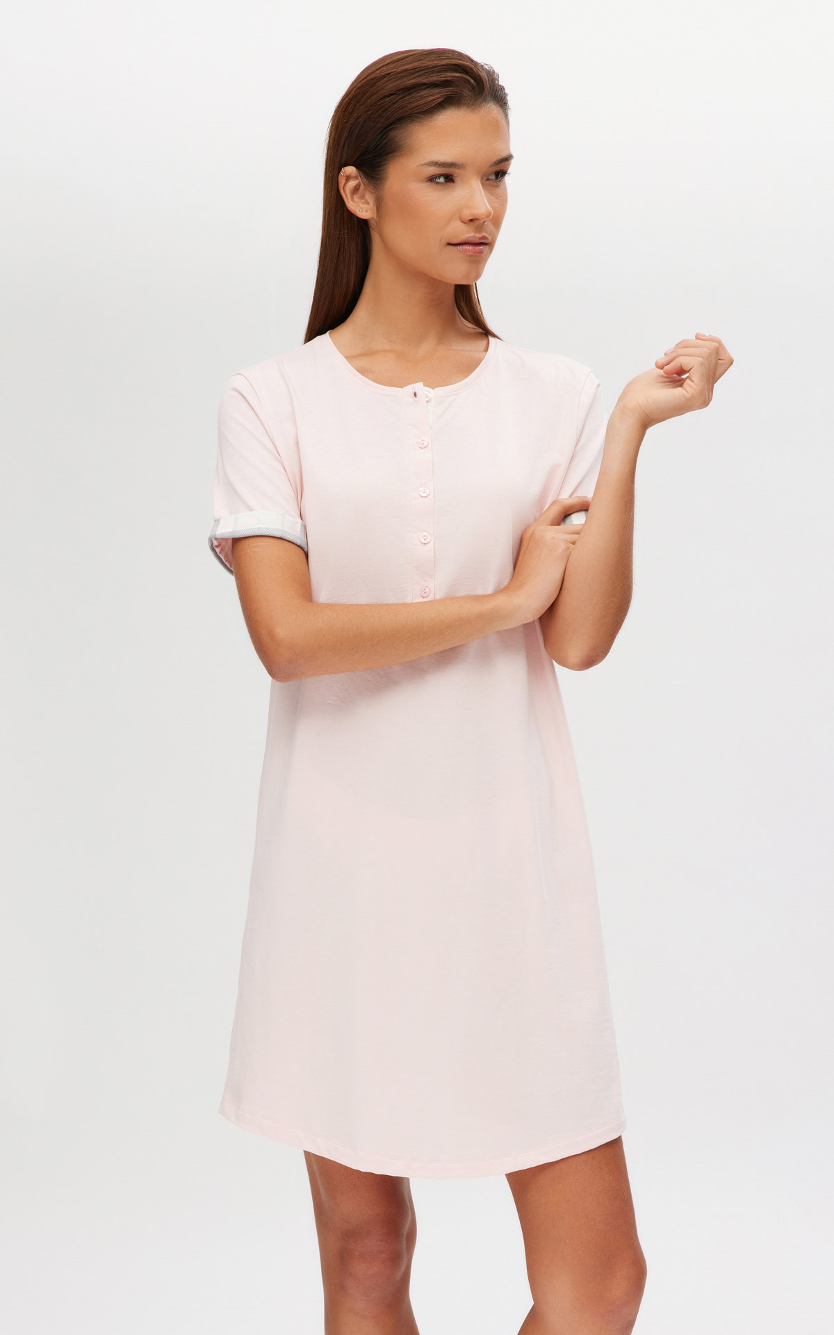 Nightgown made from 100% high-quality cotton, featuring a placket and rounded hem. Suitable for maternity and nursing periods.