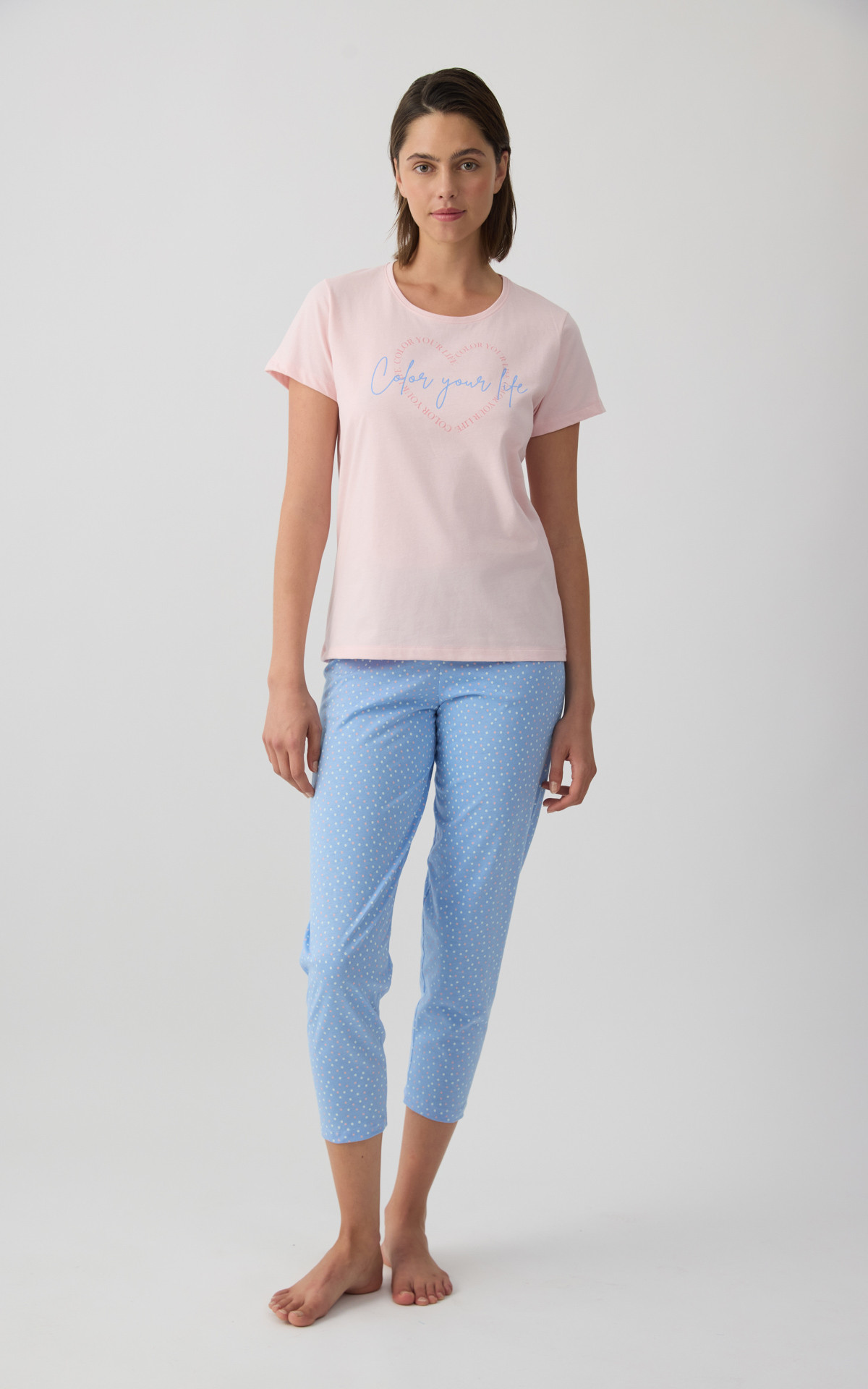 • Multi Dots Short Sleeve Chino/ Capri Women's Pyjama Set
