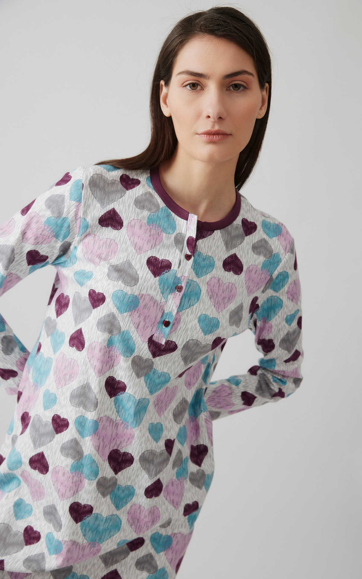 • Multi Herts Women's Pyjama Set with placket