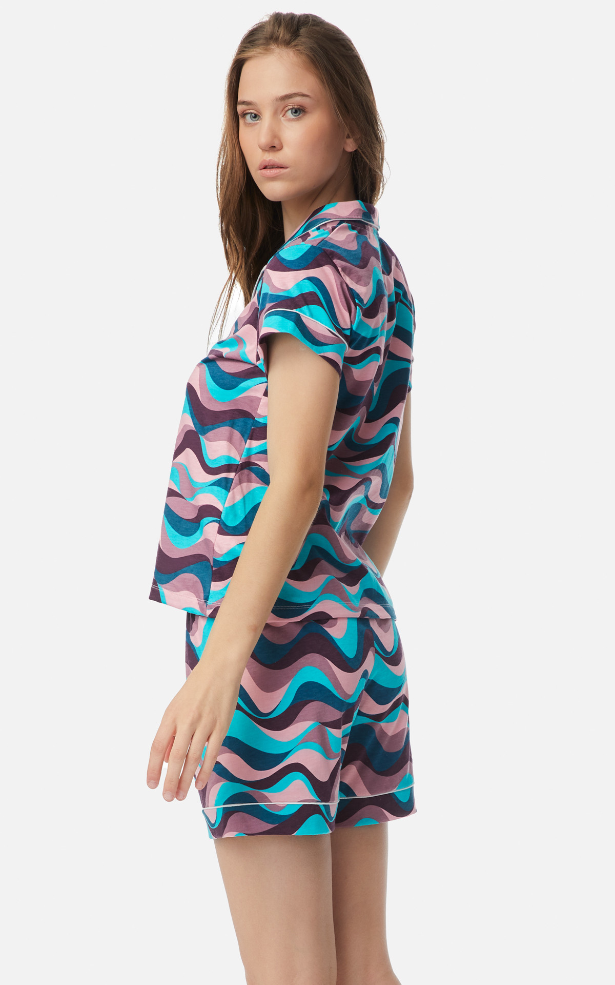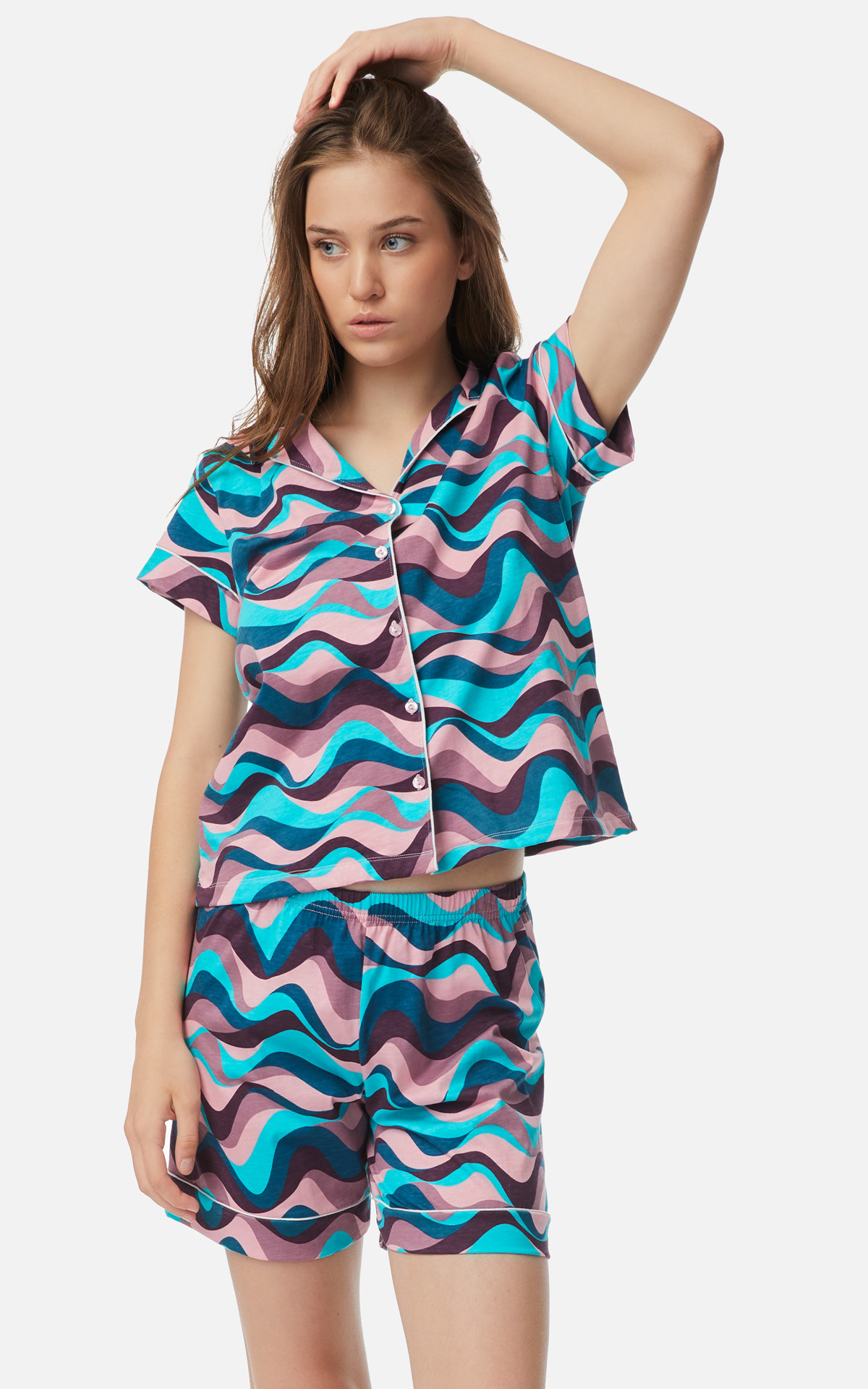 • Printed Short Sleeve Buttoned Women's Pyjama Set