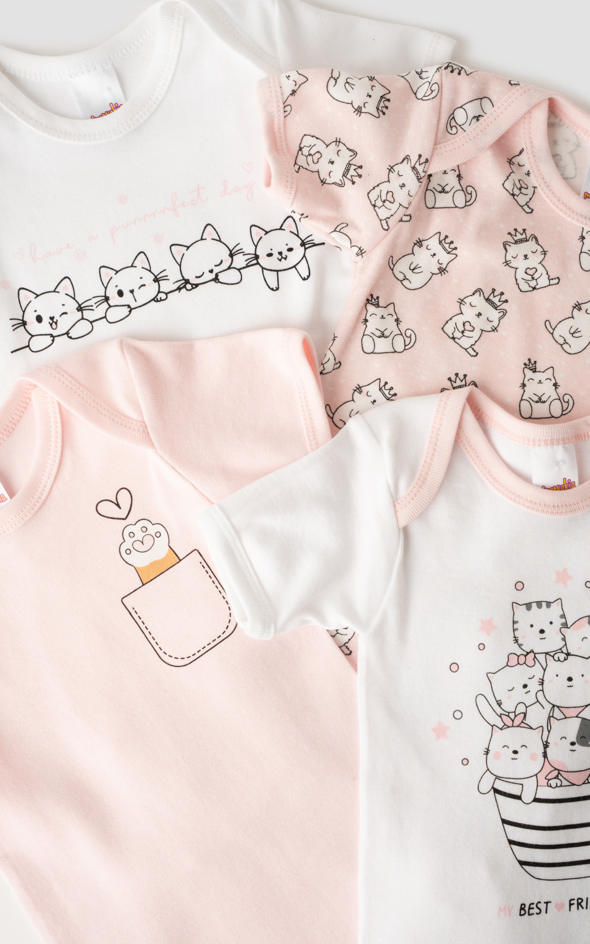 • Kitty Short Sleeve Baby Girls' Bodysuit 4pcs