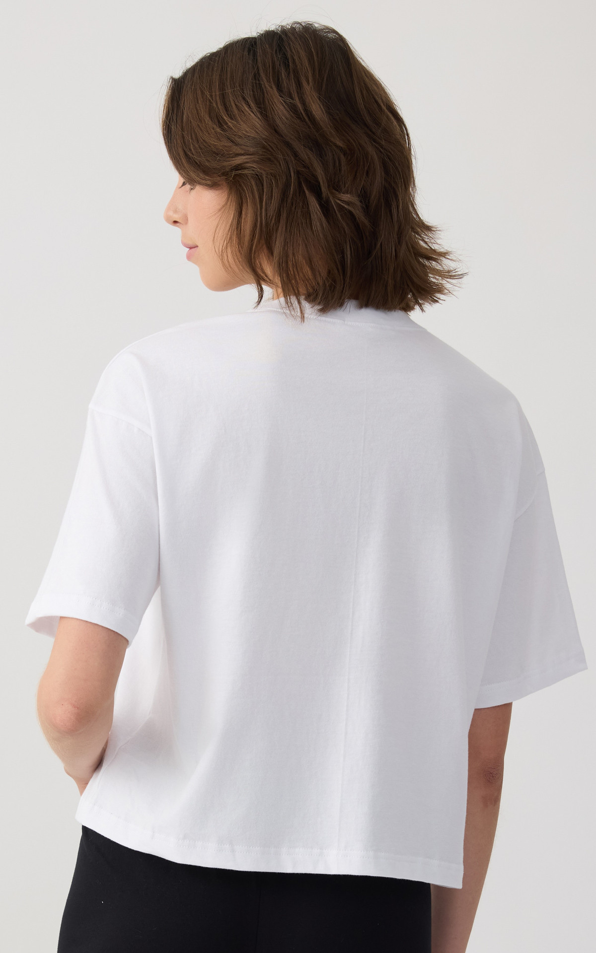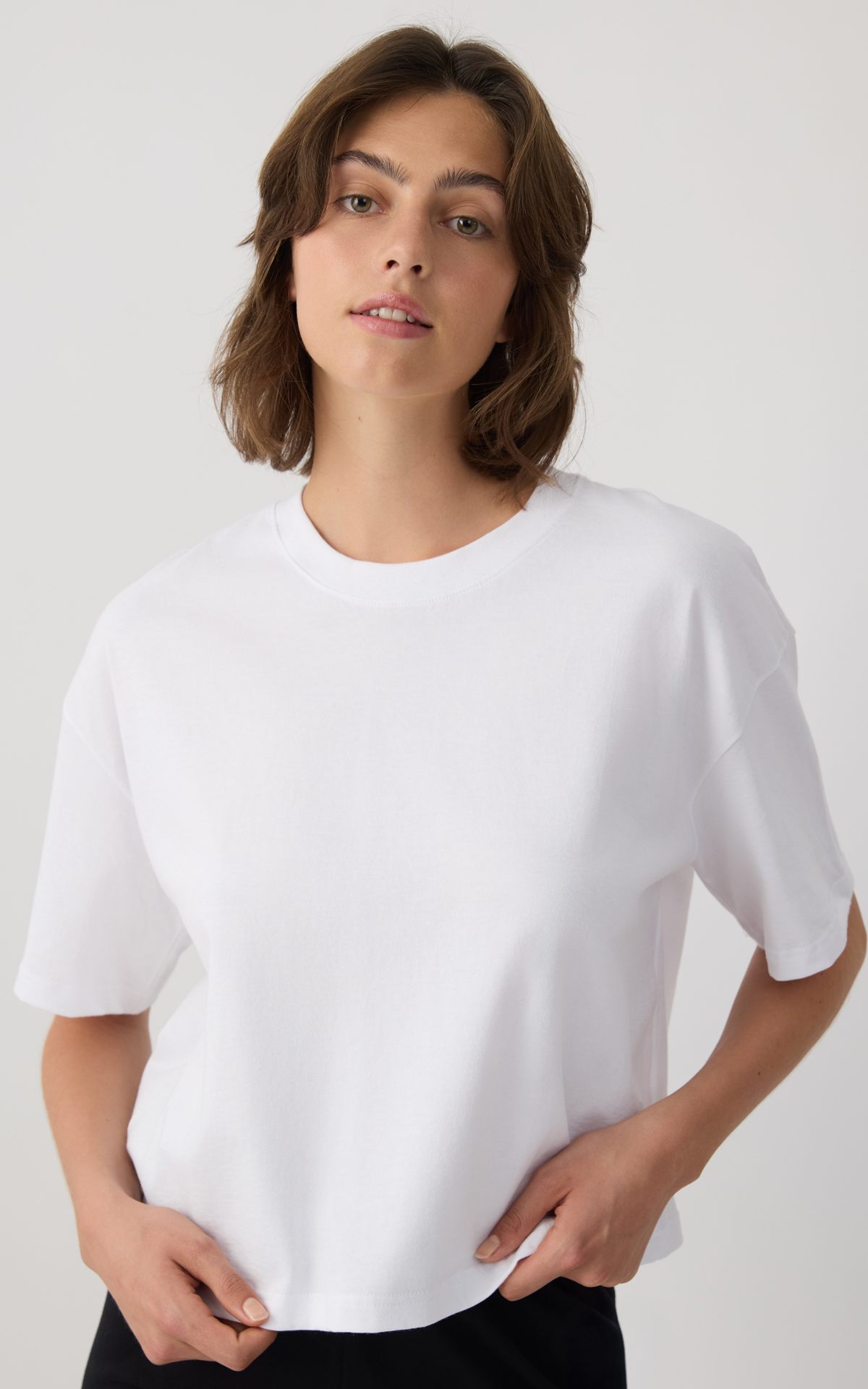 Women's solid-color short-sleeve T-shirt with a classic round neckline, designed for a comfortable and relaxed fit. Made with 50% TENCEL™ and 50% cotton, it is soft, breathable, and lightweight, offering exceptional comfort throughout the day.