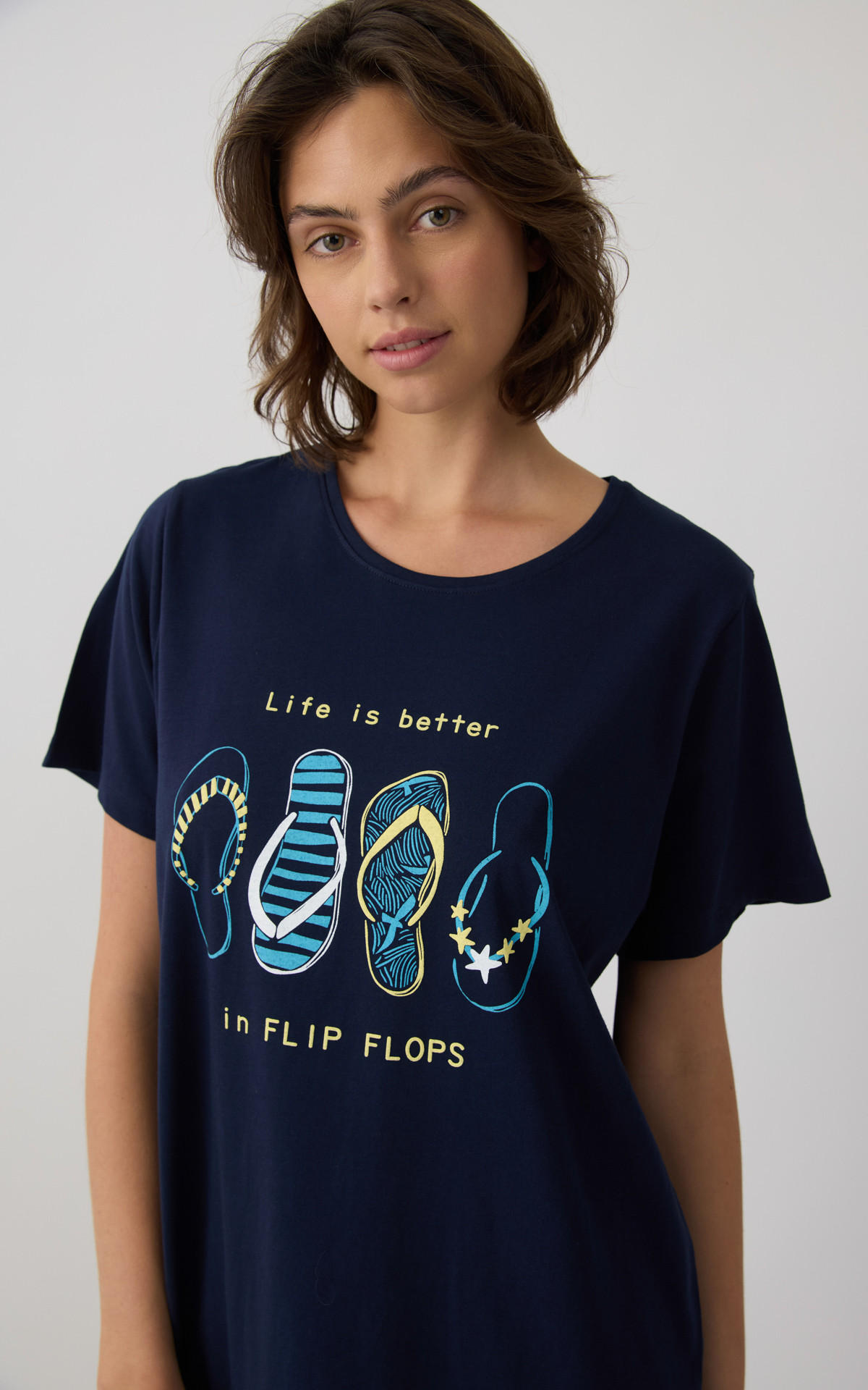 • Tulip Short Sleeve V- neck Women's Nightdress with placket