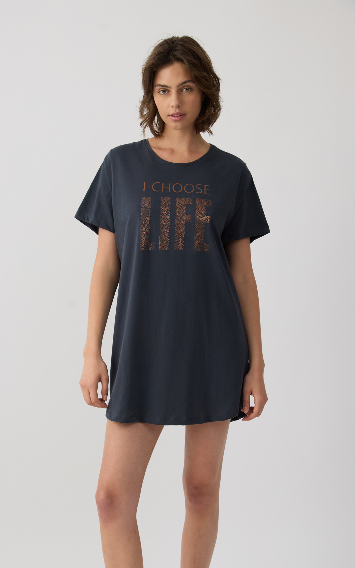 • Short Sleeve Women's Boyfriend T-shirt Dress with print