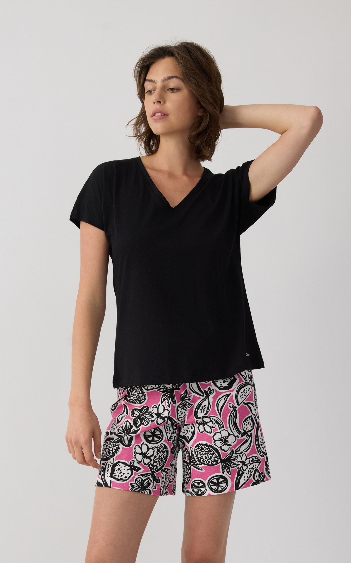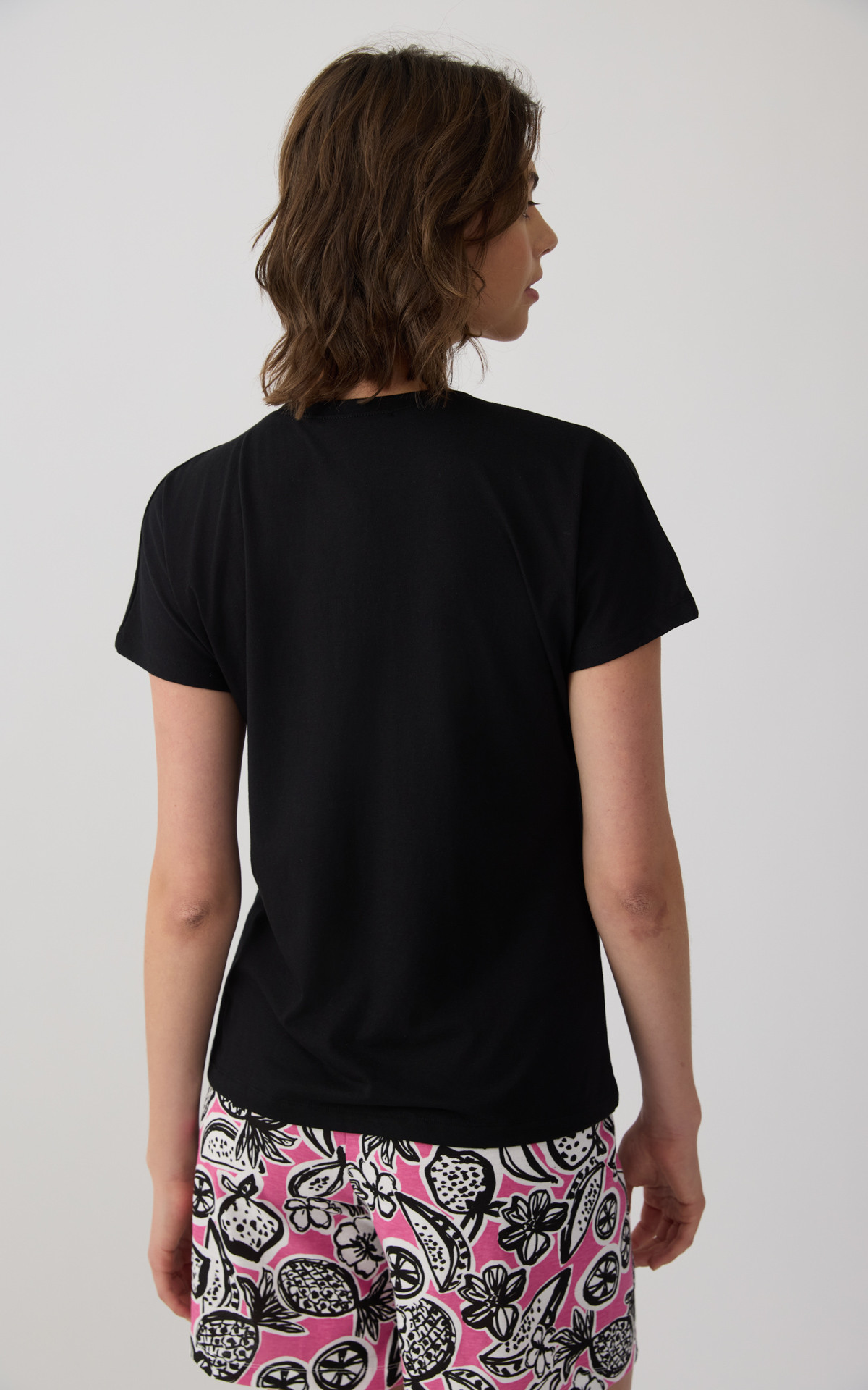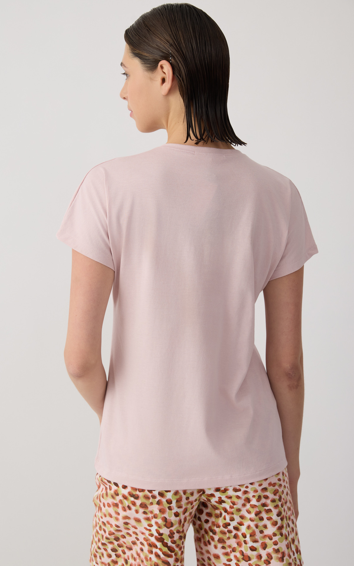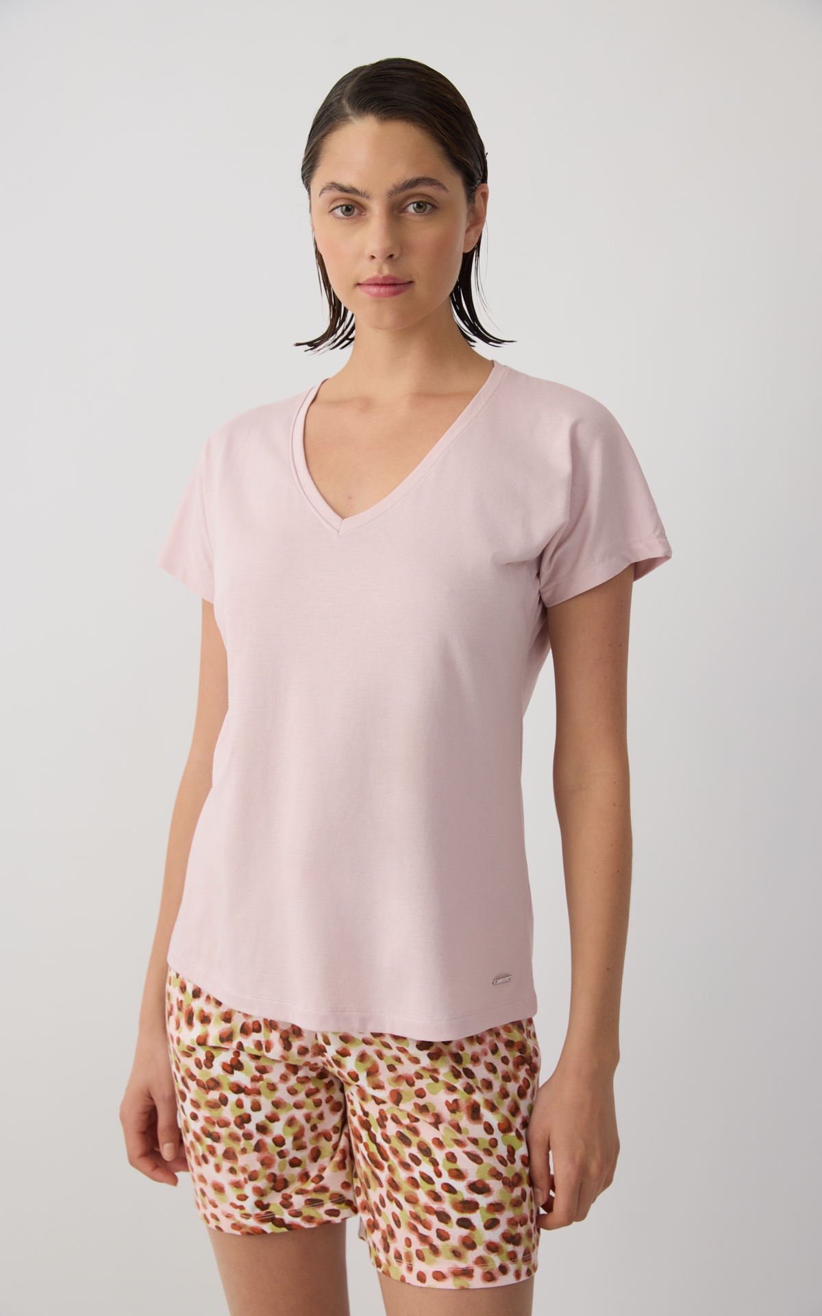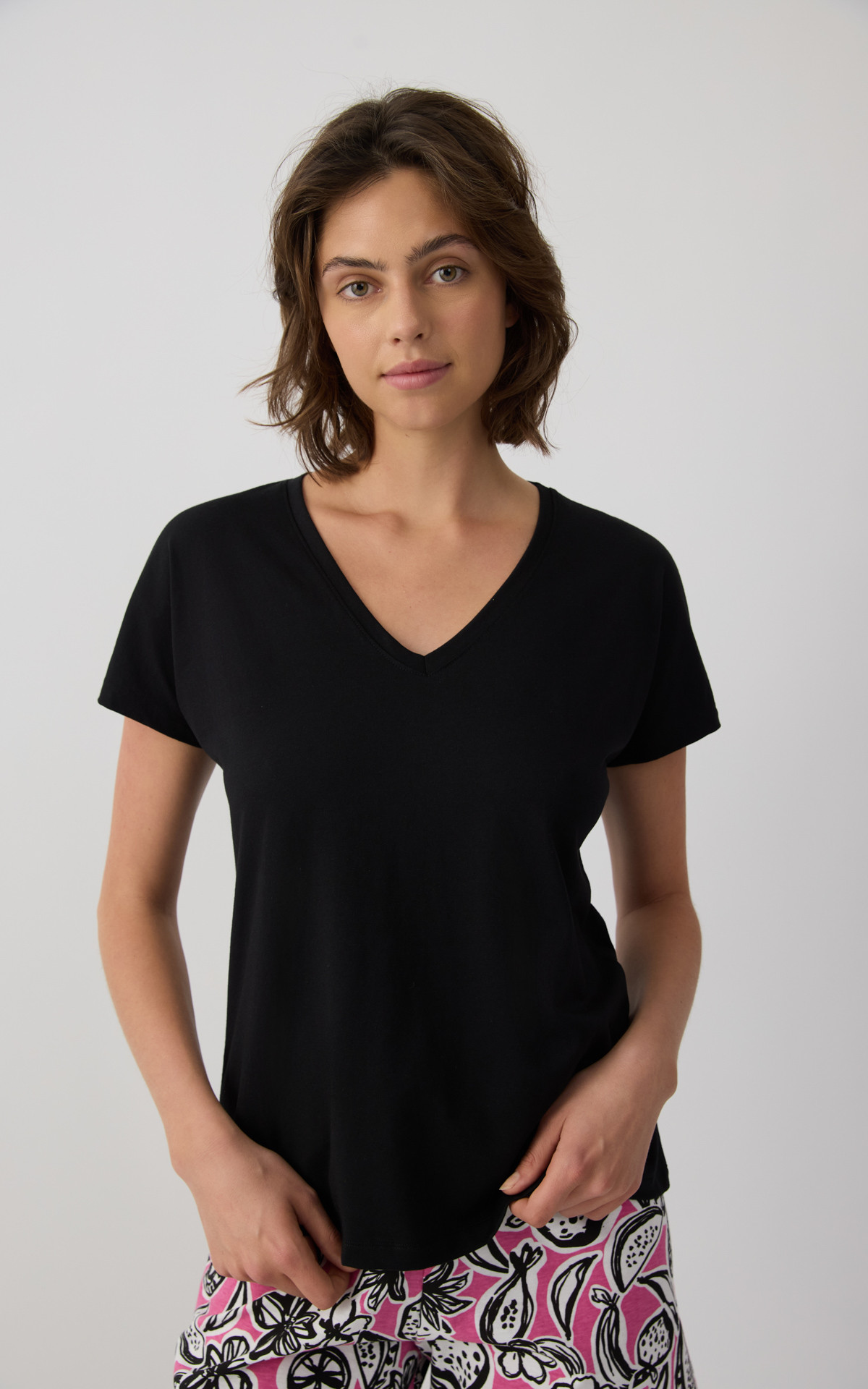 Solid-colored women's top with kimono-style sleeves and a V neckline, offering a relaxed and elegant fit. Made with 50% TENCEL™ Modal, it provides exceptional softness, natural breathability, and a smooth feel against the skin. An ideal choice for comfort and effortless style, perfect for relaxing at home or everyday wear.