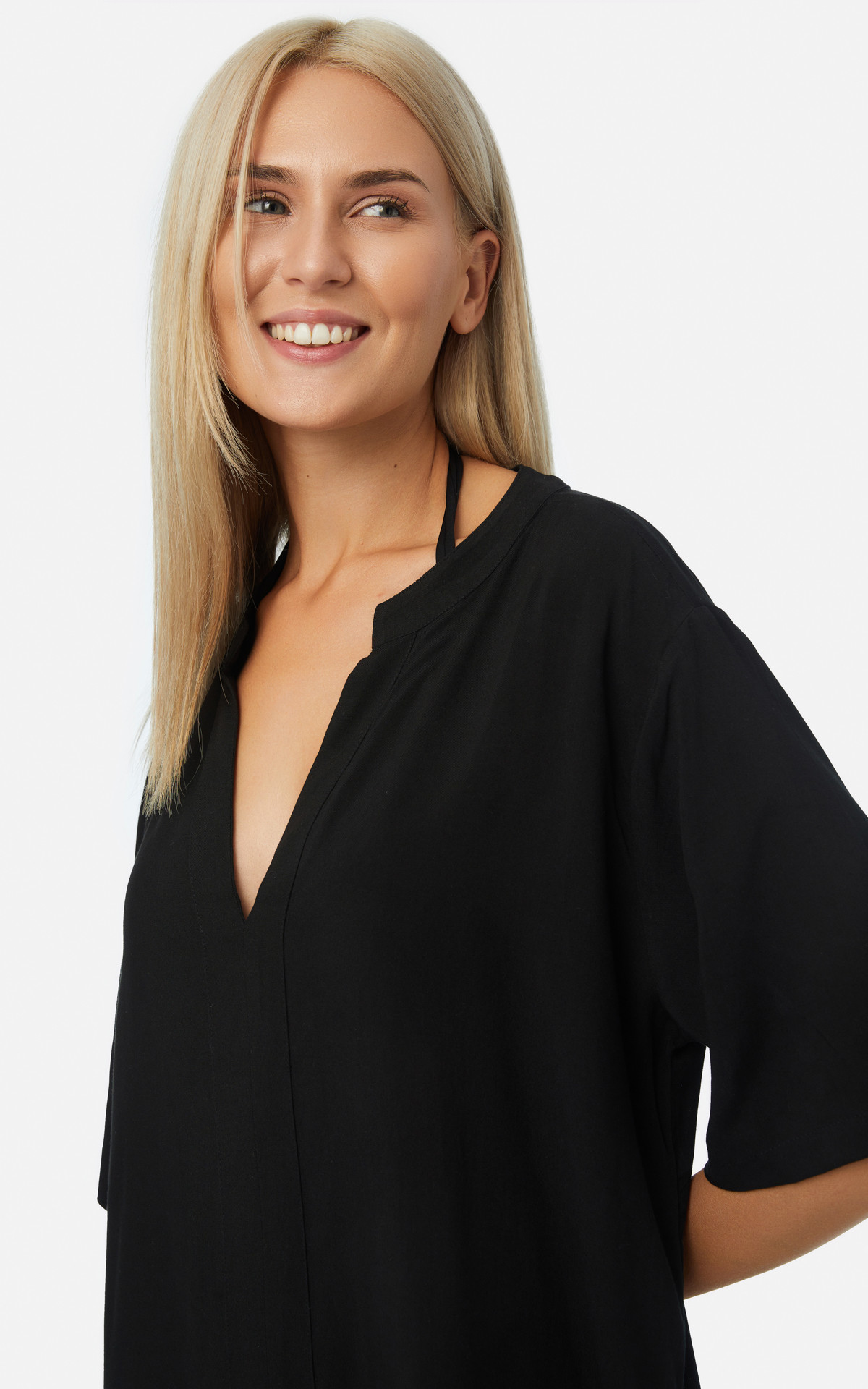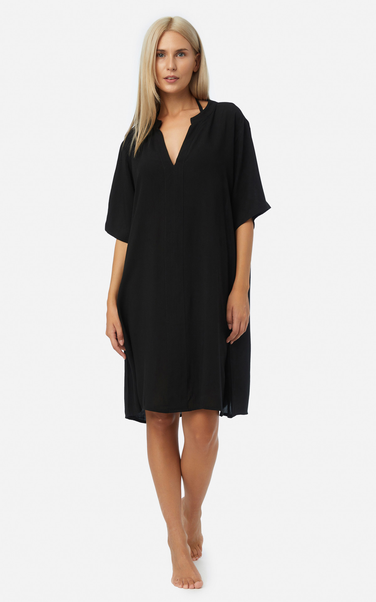 Kaftan dress with a deep V-neckline, short sleeves, and knee-length design. Made from 100% viscose for a lightweight feel and flawless look.