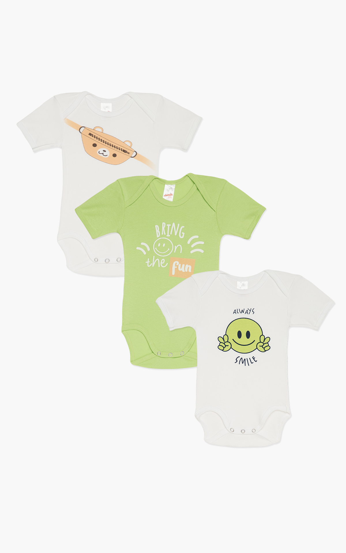 • Smile Short Sleeve Baby Boys' Bodysuit 3pcs
