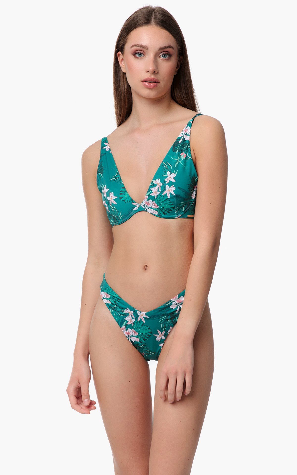 Tropical patterned rio v brazilian bikini bottom. Wear it the matching with Sparta bralette, triangle or triangle wired bikini tops for a complete look.